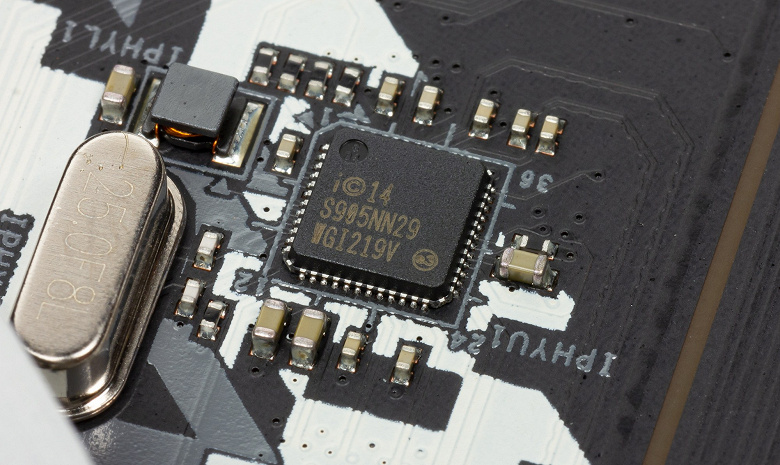 Традиционно поддерживаемый системным чипсетом сетевой гигабитный контроллер Intel GigaPHY i219V нашел свое место и на этой плате.