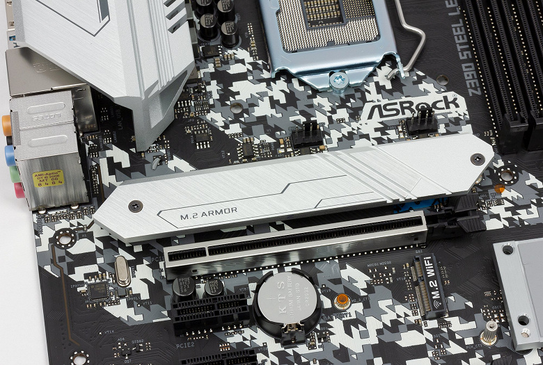 Оба слота M.2 имеют радиаторы с термоинтефейсом, и это очень необычно для относительно бюджетной материнской платы.