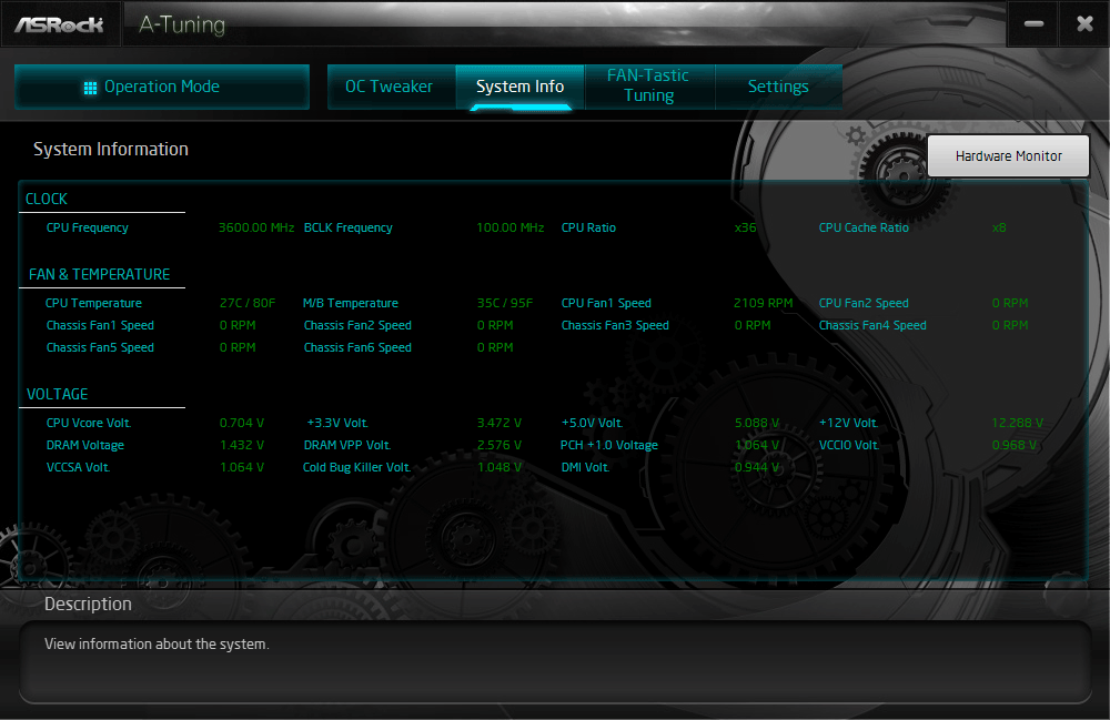 Начальная картинка демонстрирует сводные особенности и параметры работы процессора, памяти, вентиляторов, периферии.