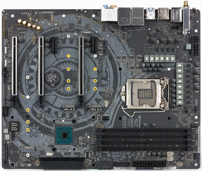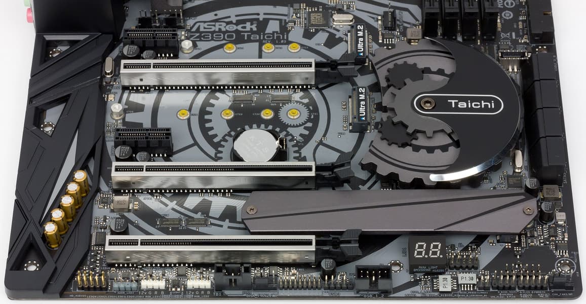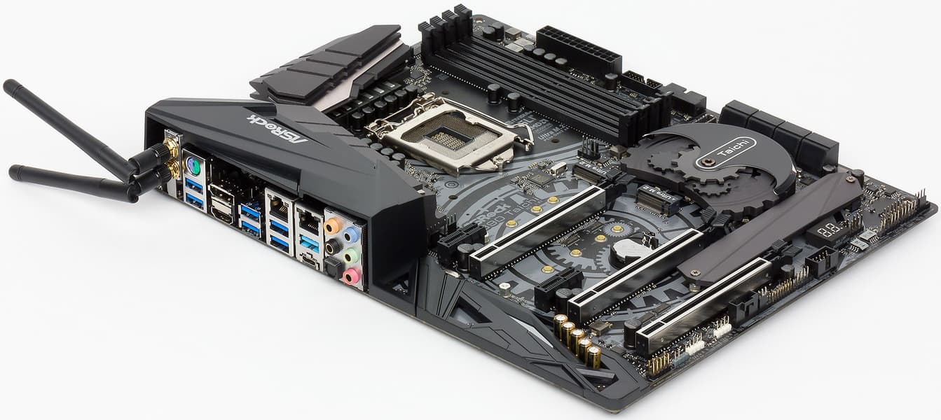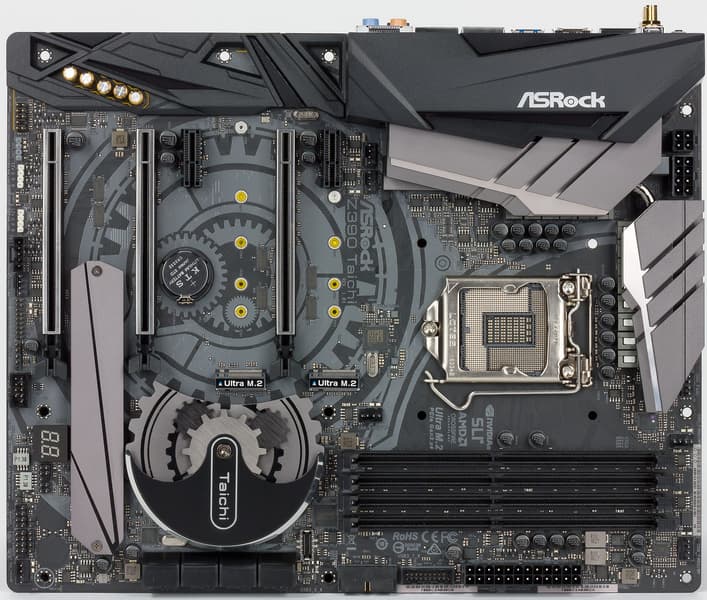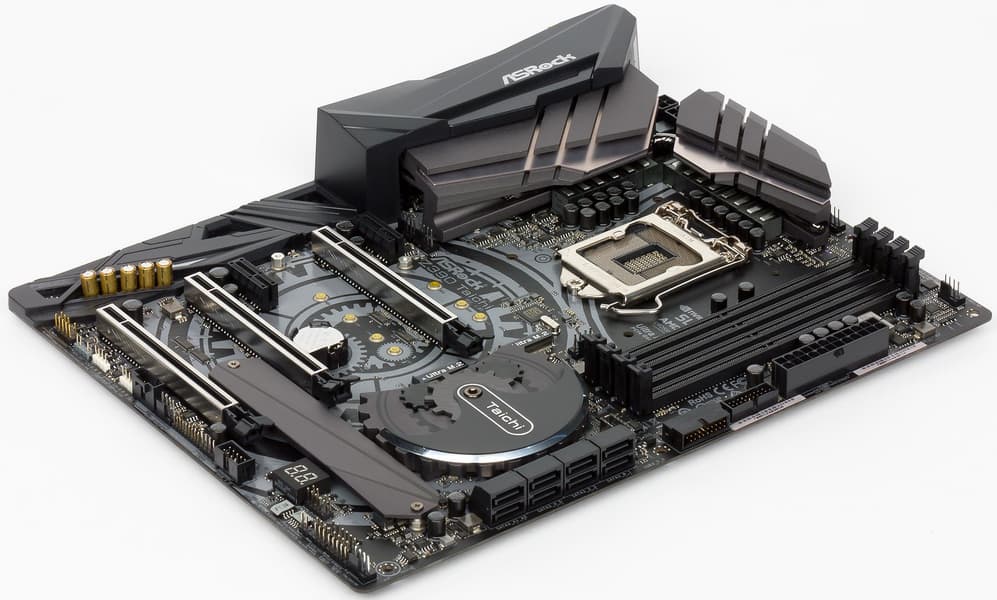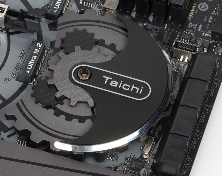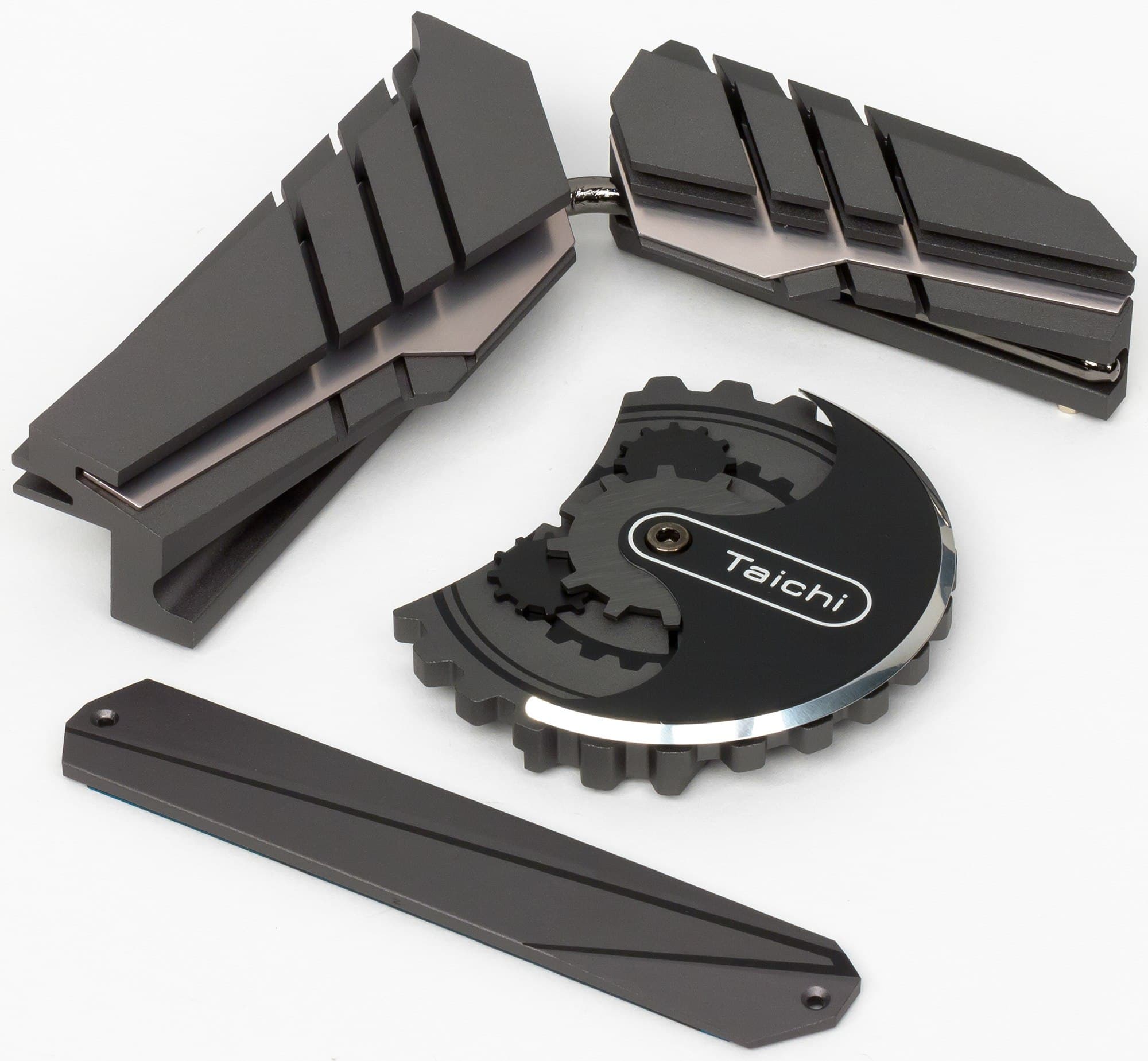 Итак, у нас ASRock и Taichi. Стальной холодный окрас, шестерни вечного механизма... Давайте посмотрим, что за механизм.