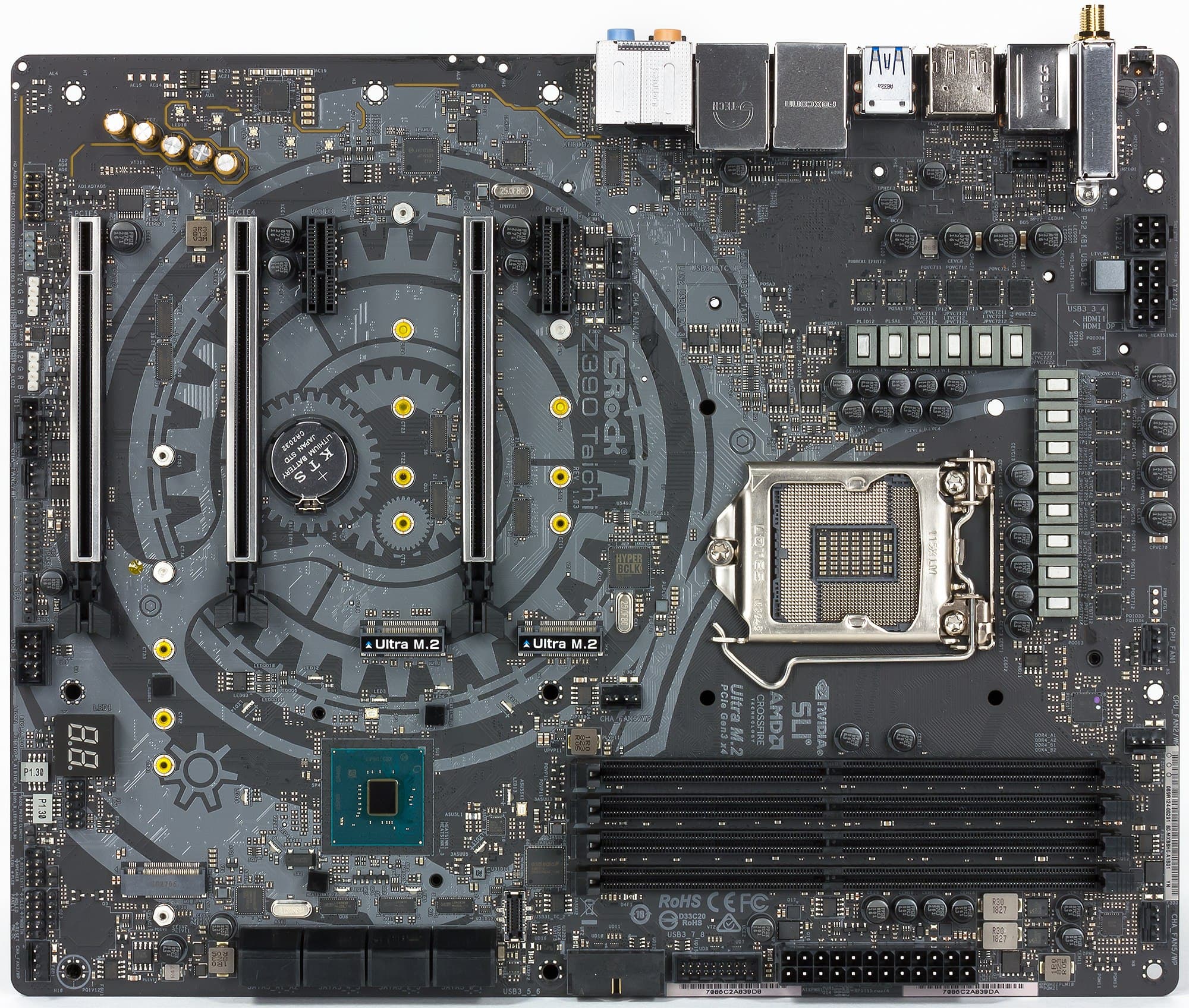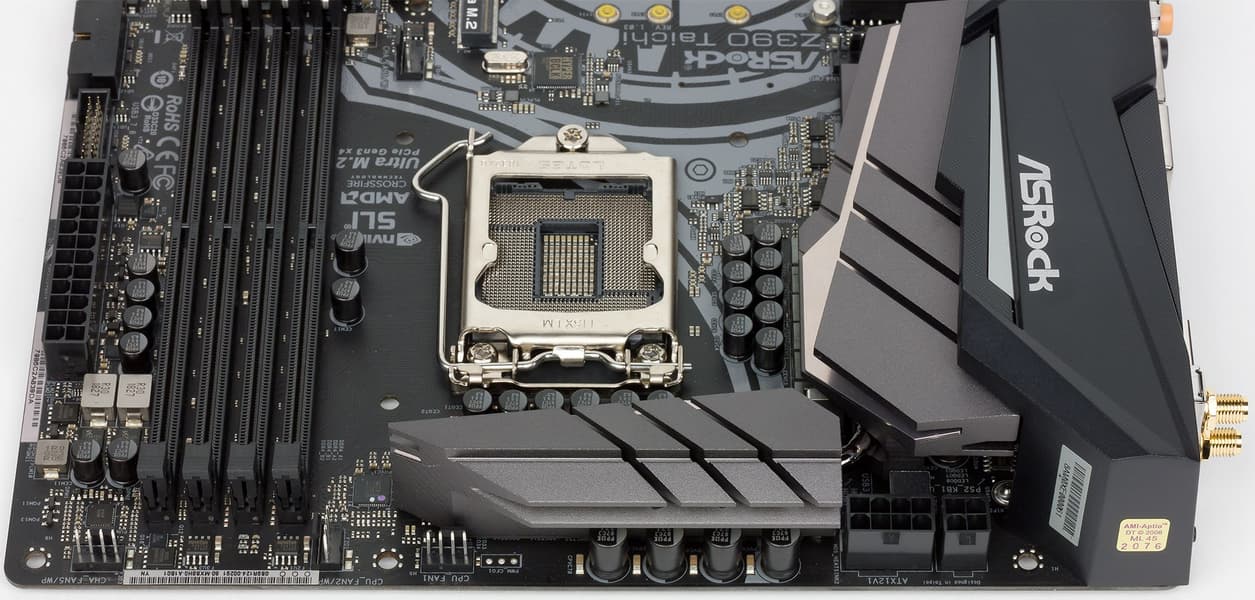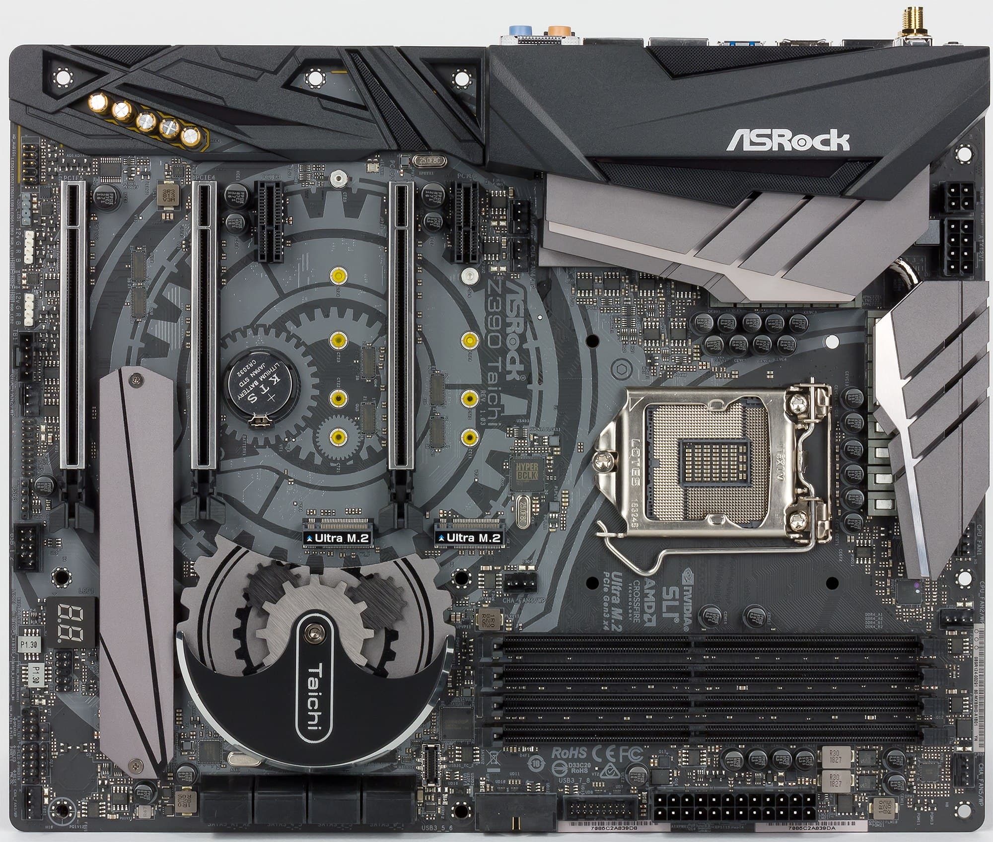 ASRock Z390 Taichi, основанная на чипсете Intel Z390, поддерживает процессоры Intel Core 8-го и 9-го поколений, выполненные под разъем (сокет) LGA1151v2. Хотя физически отличий от старого LGA1151 вроде бы нет, работать новые процессоры в LGA1151v1 не будут (что-то вроде «лампочки Ильича»: если привязать лампочку к потолку, то она будет выглядеть как светильник, но светить не будет).
