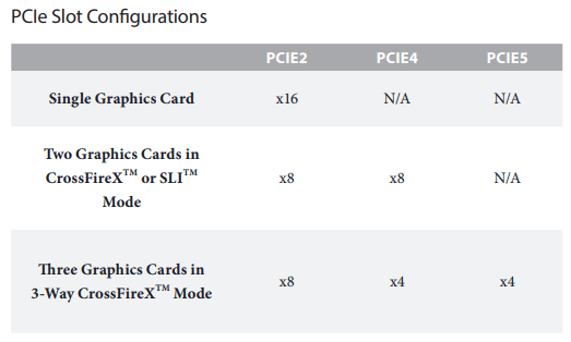 | Слоты расширения | 3 × PCI Express 3.0 x16 (режимы x16, x8+x8 (SLI/CrossFire), x8+x4+x4 (CrossFire)) 2 × PCI Express 3.0 x1 |