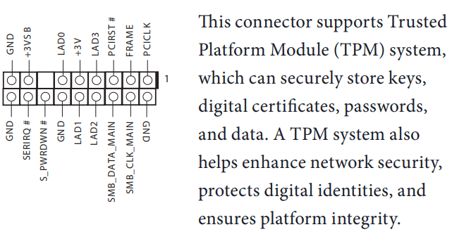 Чтобы закончить с периферией, следует еще упомянуть 5-контактный разъем Thunderbolt AIC (для подключения фирменной платы расширения с соответствующим портом), а также разъем TPM (для подключения систем обеспечения безопасности)