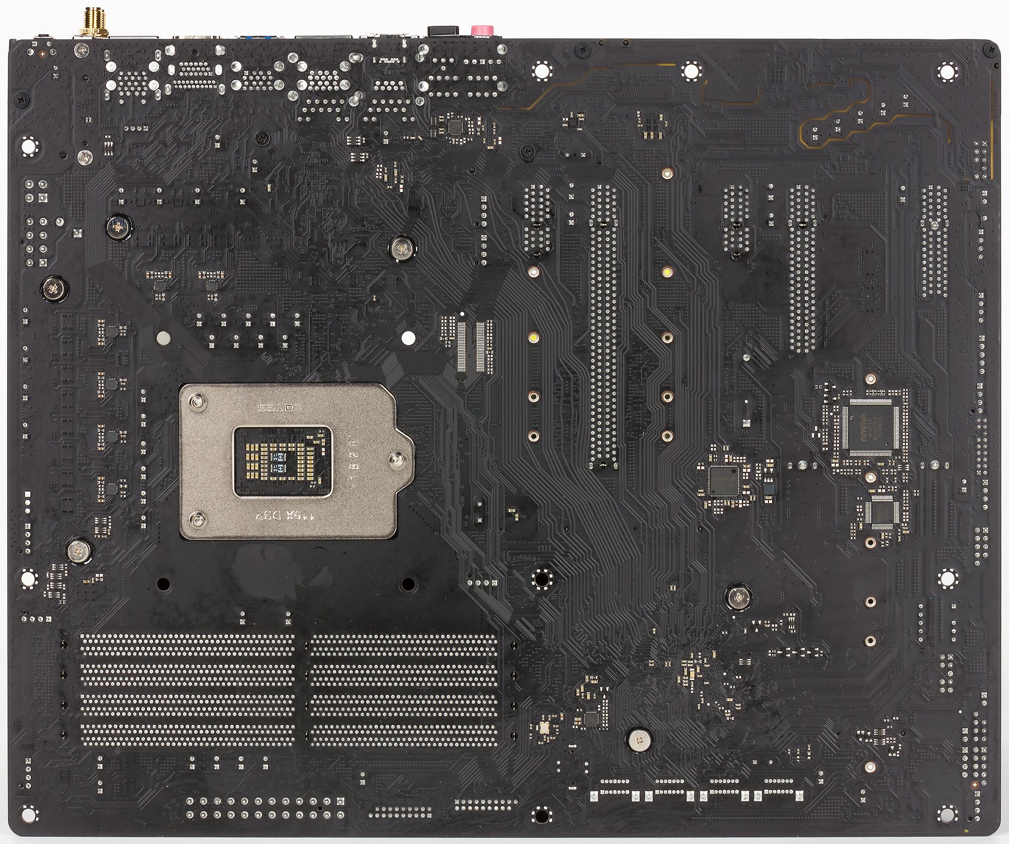 На задней панели платы нашлось место двум выводам для антенн Wi-Fi и порту PS/2. Анахронизм не анахронизм, но иногда операционная система не может распознать USB-устройства, так что воткнутые в USB мышь и клавиатура оказываются недоступны, а вот PS/2-периферия — всегда работает (если, конечно, она есть у вас под рукой). Также на задней панели имеются видеовыходы HDMI 1.4 и DisplayPort 1.2 на случай, если вы захотите использовать встроенное видеоядро, имеющееся у абсолютного большинства современных процессоров Intel.