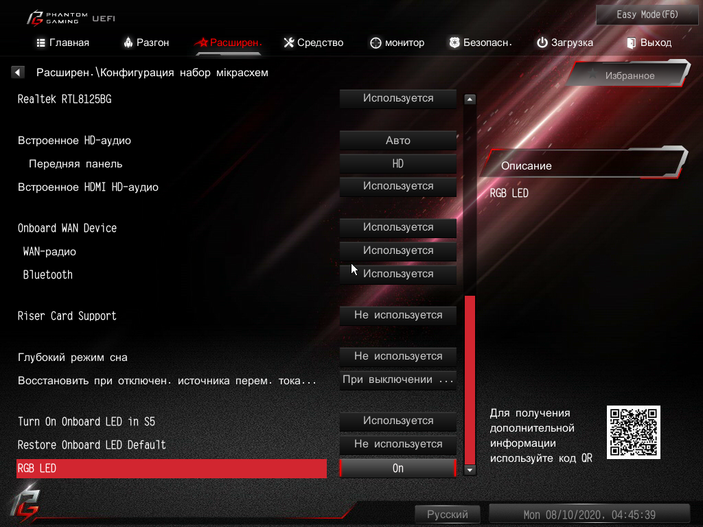 Продолжая разговор о световых индикаторах, надо упомянуть и возможности материнской платы по подключению RGB-подсветки. Имеется два разъема для подключения любых устройств этого плана: 1 разъем для подключения адресуемых (5 B 3 A, до 15 Вт) ARGB-лент/устройств и 1 разъем неадресуемых (12 В 3 А, до 36 Вт) RGB-лент/устройств.