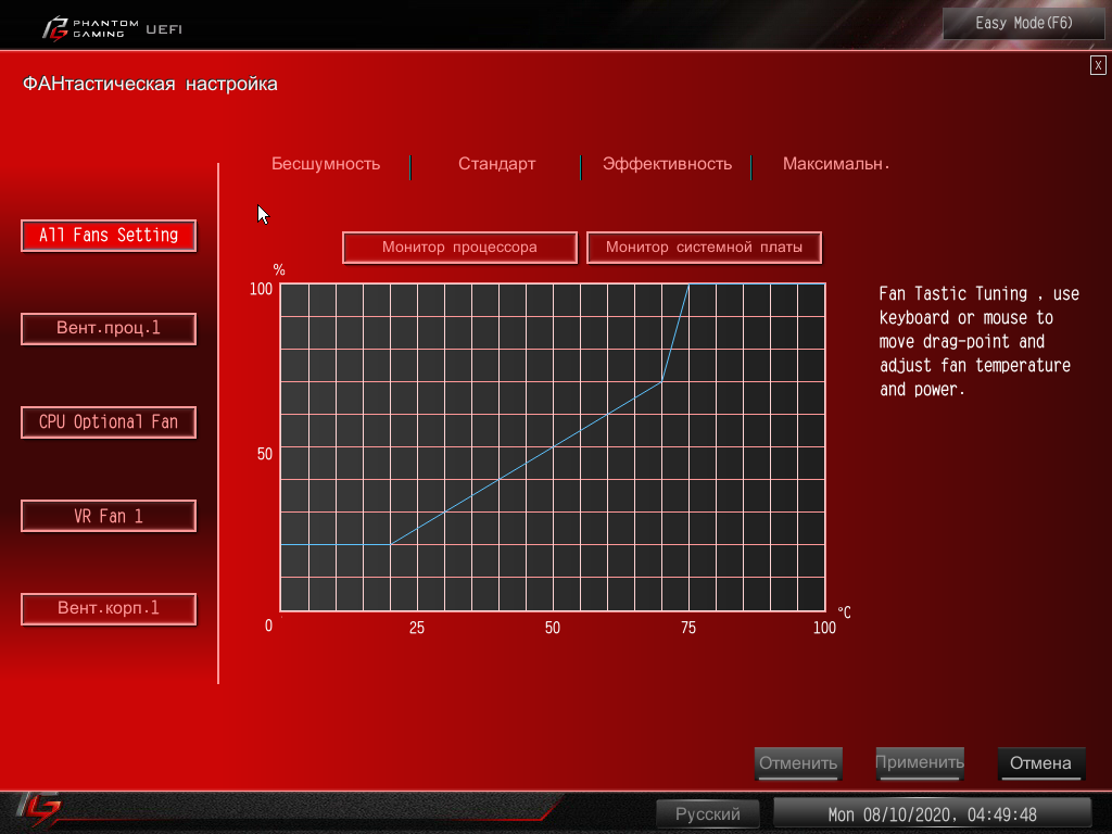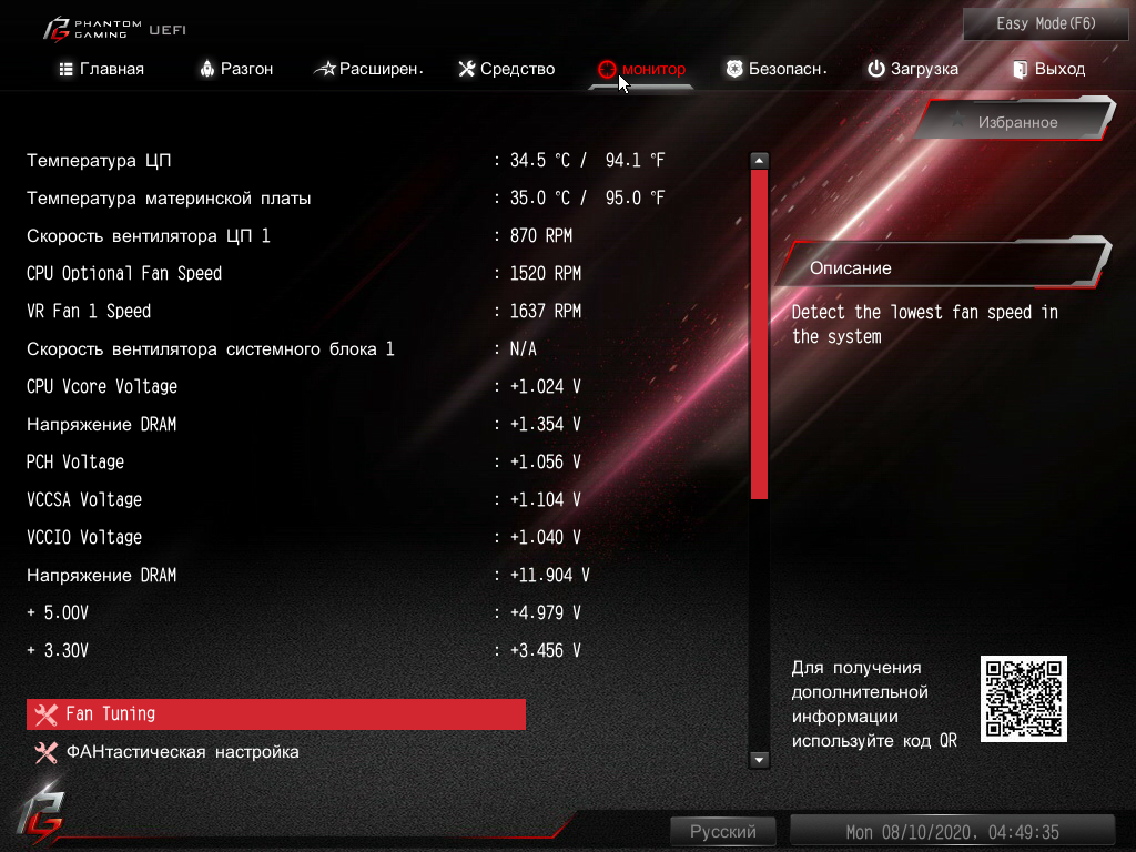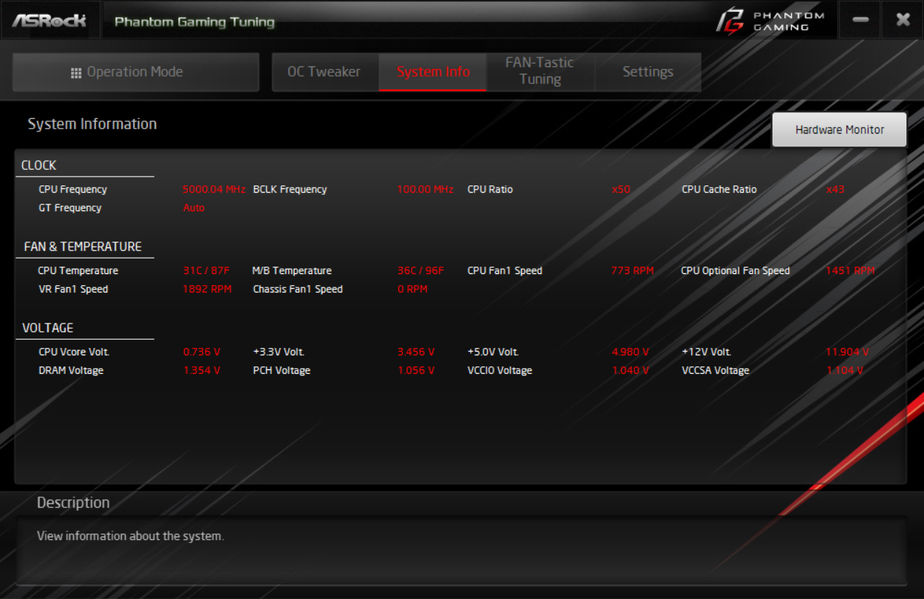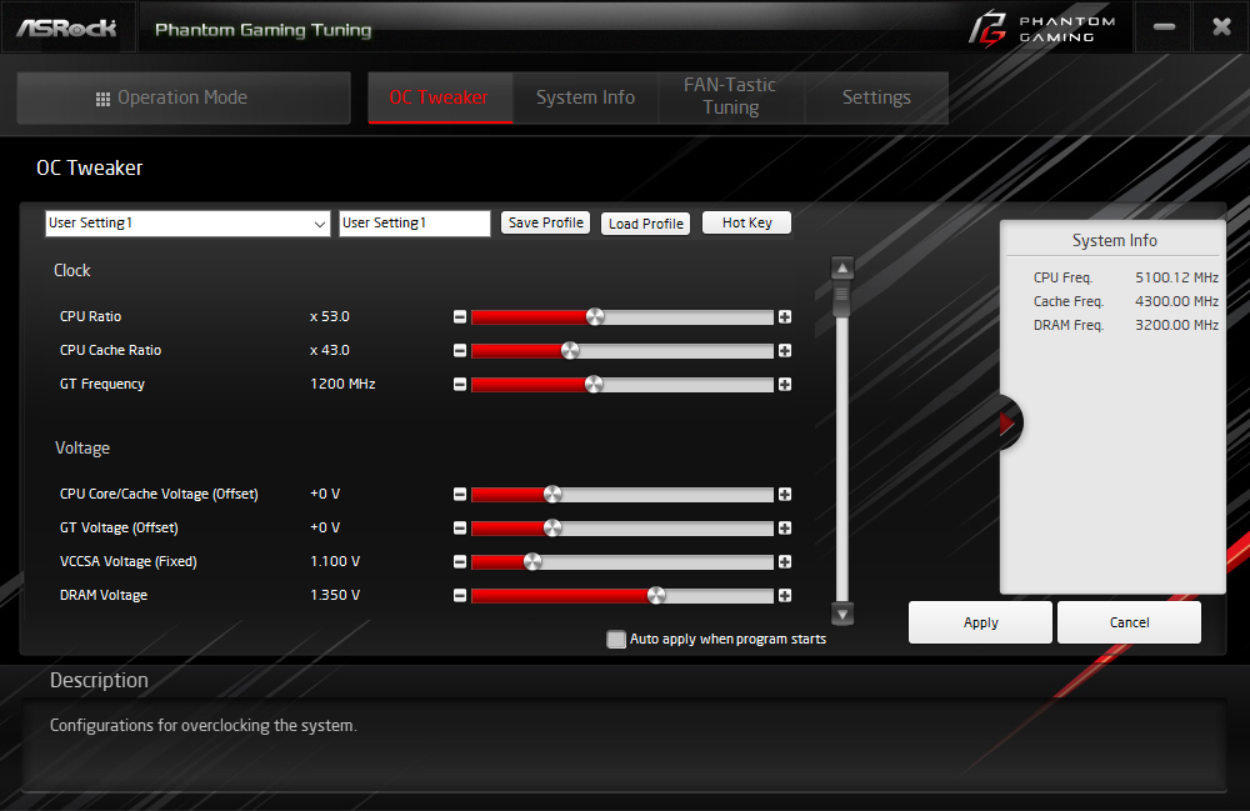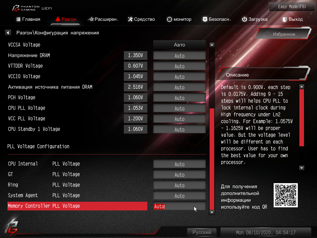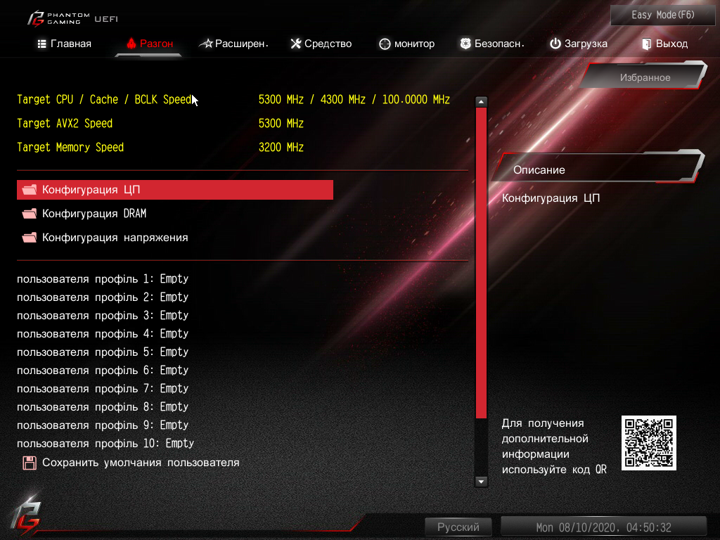 Программные способы оверклокинга я пробовать не стал: многочисленные предыдущие попытки не давали нужных результатов, потому что утилита Phantom Gaming Tuning не включает синхронно максимальную частоту по всем ядрам. Все равно придется заходить в BIOS и оттуда управлять разгоном. Разумеется, я всегда действую очень осторожно и в рамках того, что может позволить наша СО. А это уже известно: максимум 5.3 ГГц на нашем экземпляре процессора.
