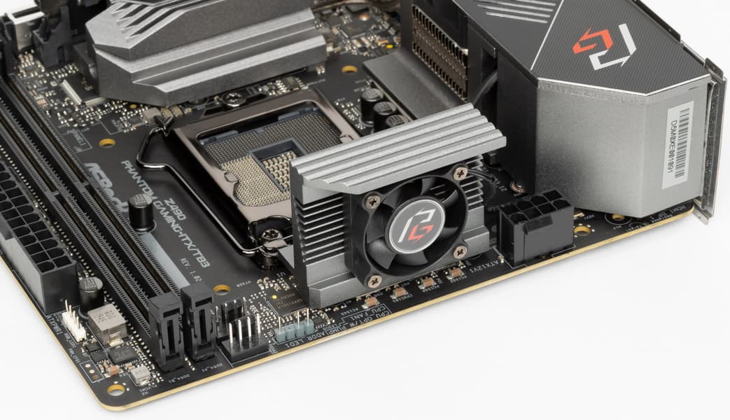 К тому же, несмотря на компактные размеры, функциональность у ASRock Z490 Phantom Gaming-ITX/TB3 довольно хороша. Мы получаем 10 портов USB разных видов (включая 4 USB 3.2 Gen2 со скоростью 10 Гбит/с, один из которых поддерживает протокол Intel Thunderbolt 3), два слота M.2, 4 порта SATA. Да, слот PCIe всего один (под видеокарту), но это стандарт Mini-ITX. Система питания процессора включает 9 фаз (6+2+1) и способна обеспечить работу любых совместимых процессоров под приличным разгоном. Плата имеет радиаторы с вентиляторами на силовых элементах системы питания, поэтому перегрев исключен (но при серьезном разгоне эти вентиляторы могут шуметь). Дополняют картину проводной сетевой 2,5-гигабитный Ethernet-контроллер, а также беспроводной контроллер, реализующий Wi-Fi 802.11ac и Bluetooth 5.0.