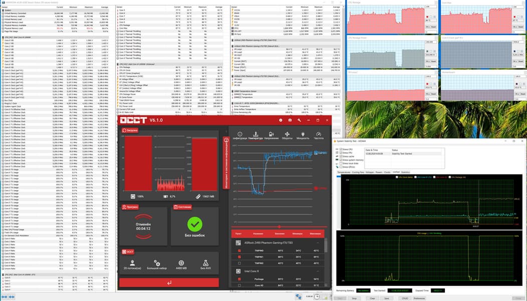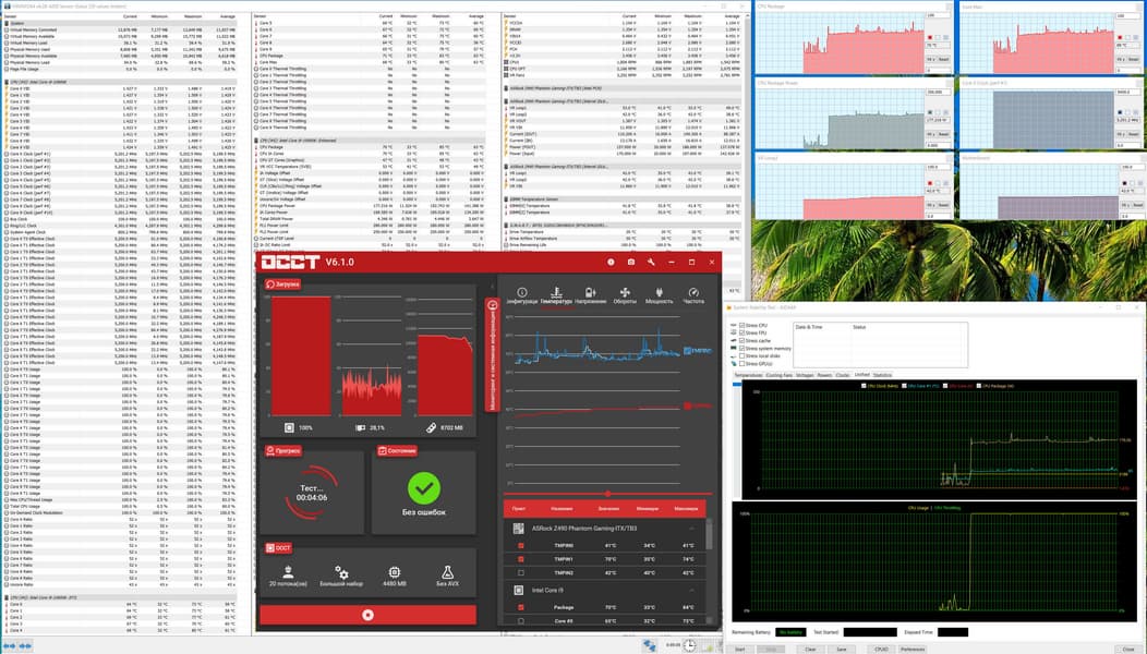 Запускаем все в режиме по умолчанию (MCE выключен). Затем нагружаем тестами от AIDA, и OCCT.