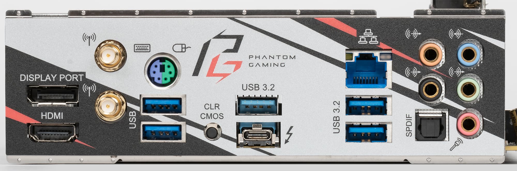 | Разъемы на задней панели | 1 × USB 3.2 Gen2 (Type-C) 3 × USB 3.2 Gen2 (Type-A) 2 × USB 3.2 Gen1 (Type-A) 1 × PS/2 комбинированный разъем 1 × RJ-45 5 аудиоразъемов типа миниджек 1 × S/PDIF (оптический, выход) 2 антенных разъема 1 × HDMI 2.0 1 × DP 1.2 кнопка сброса настроек BIOS CMOS |