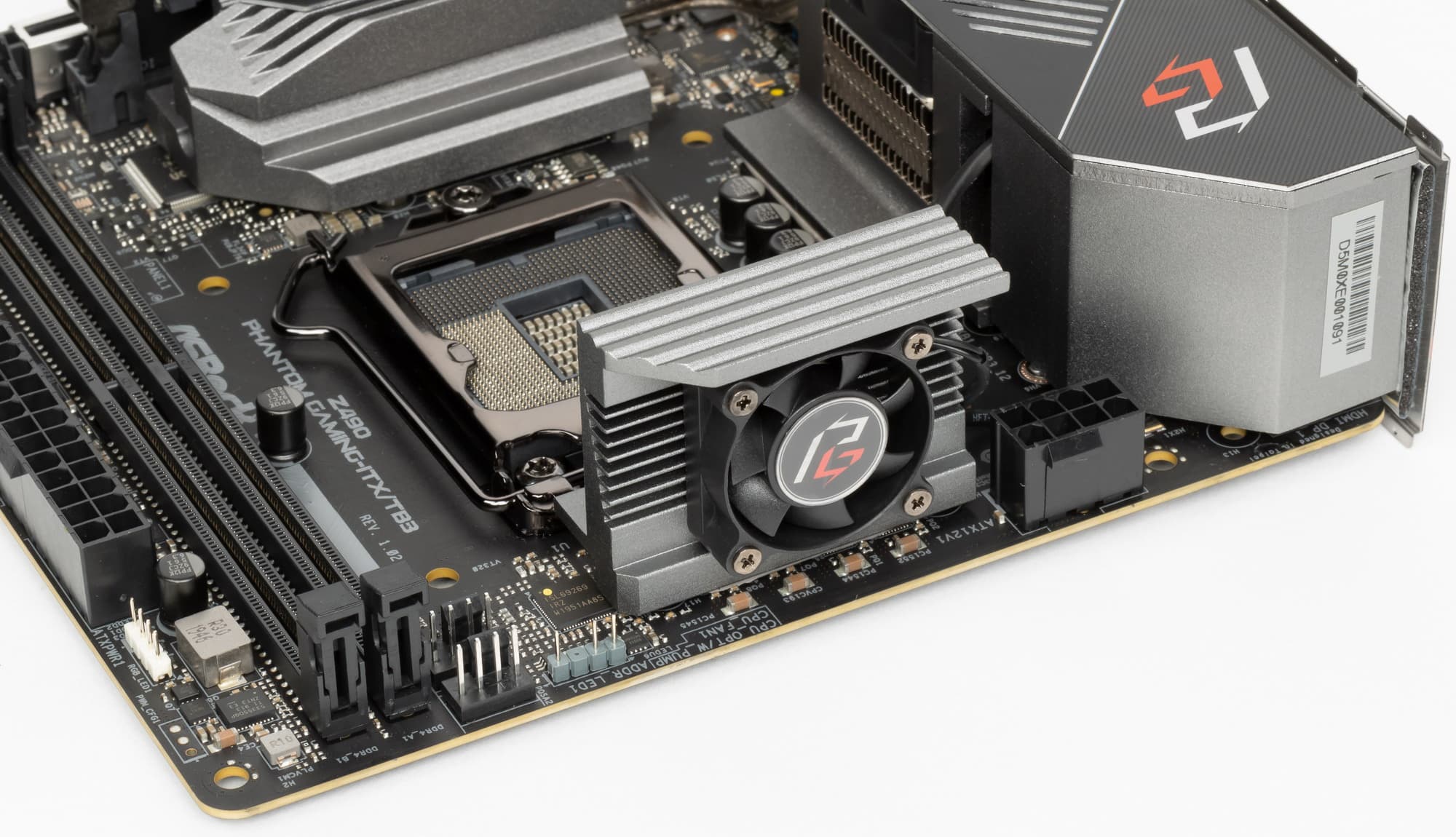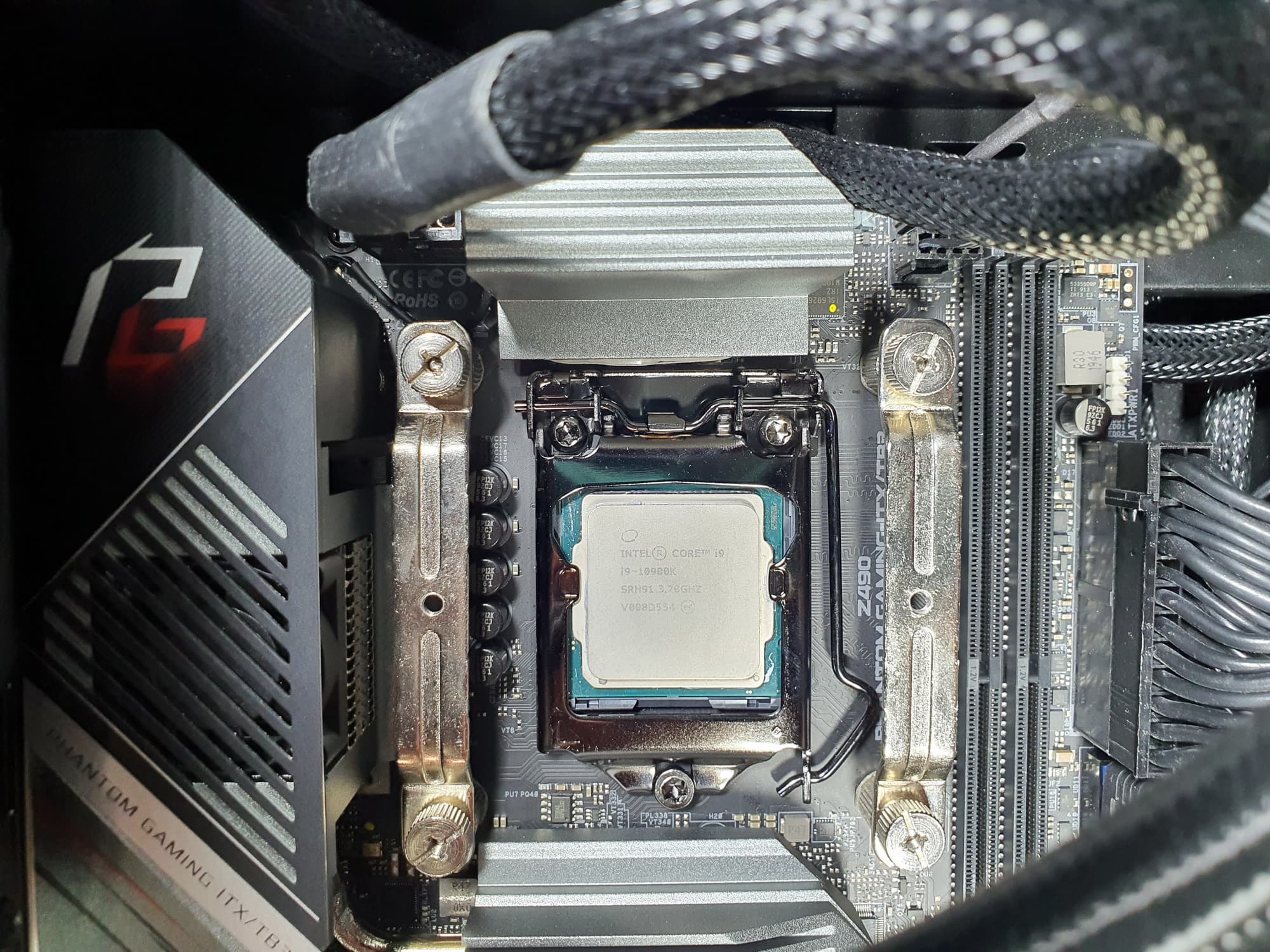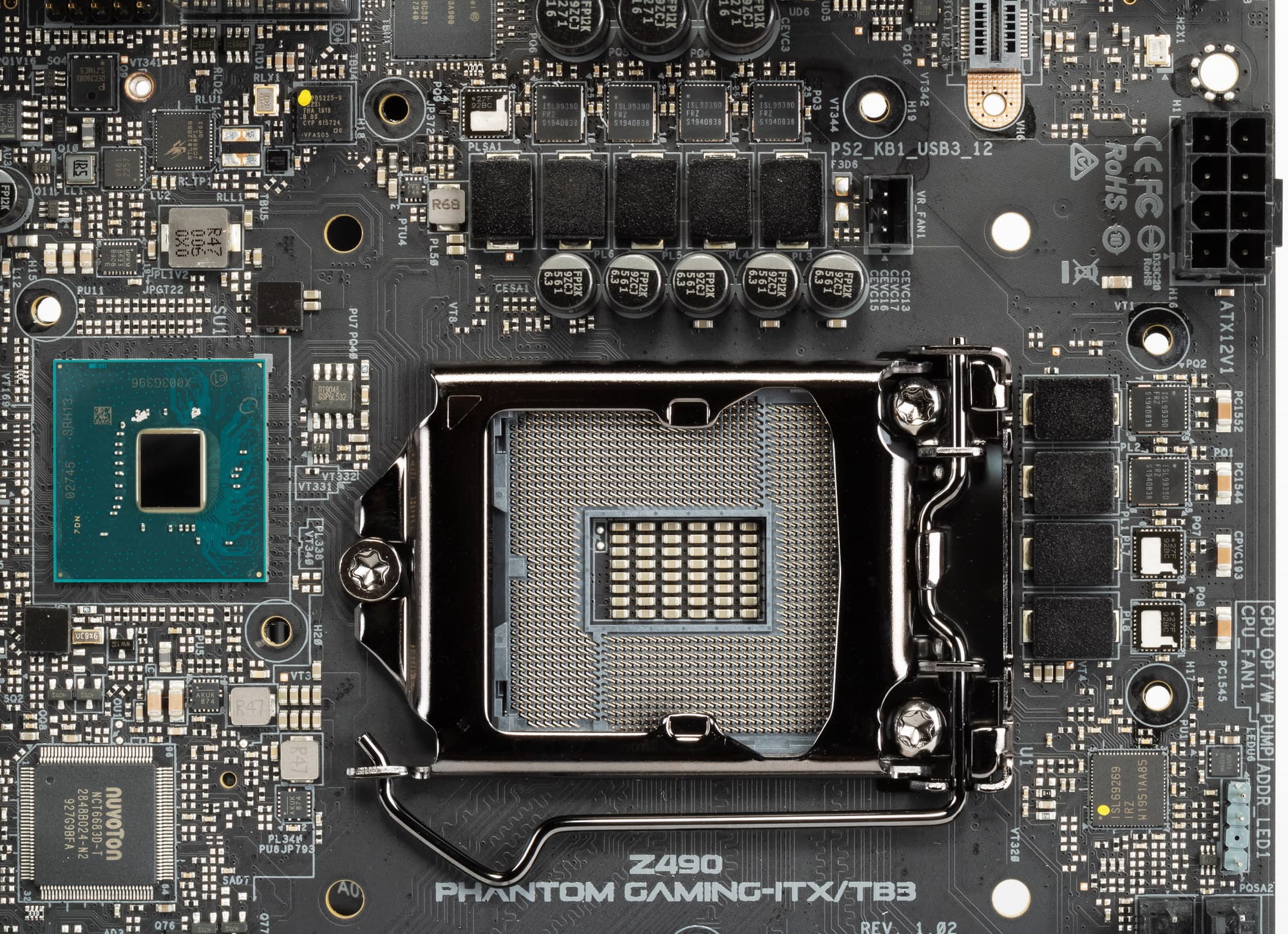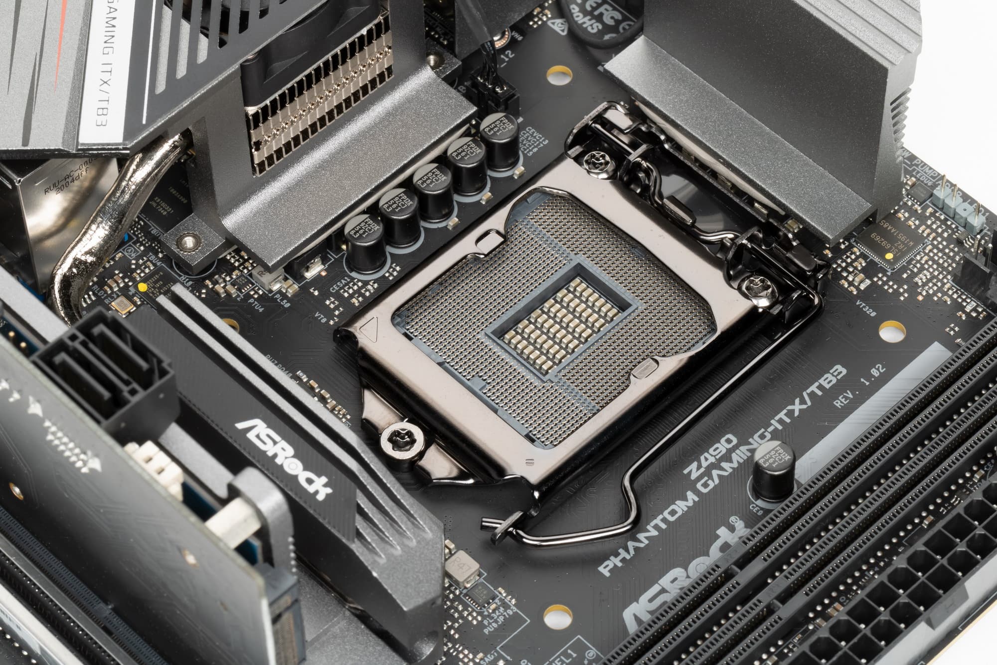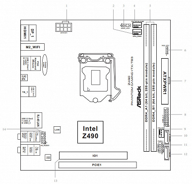 Еще раз надо напомнить, что ASRock Z490 Phantom Gaming-ITX/TB3 поддерживает процессоры Intel Core 10-го поколения, выполненные под разъем (сокет) LGA1200. Система крепления систем охлаждения для CPU точно такая же, как и для LGA1151 (прежние кулеры подойдут).