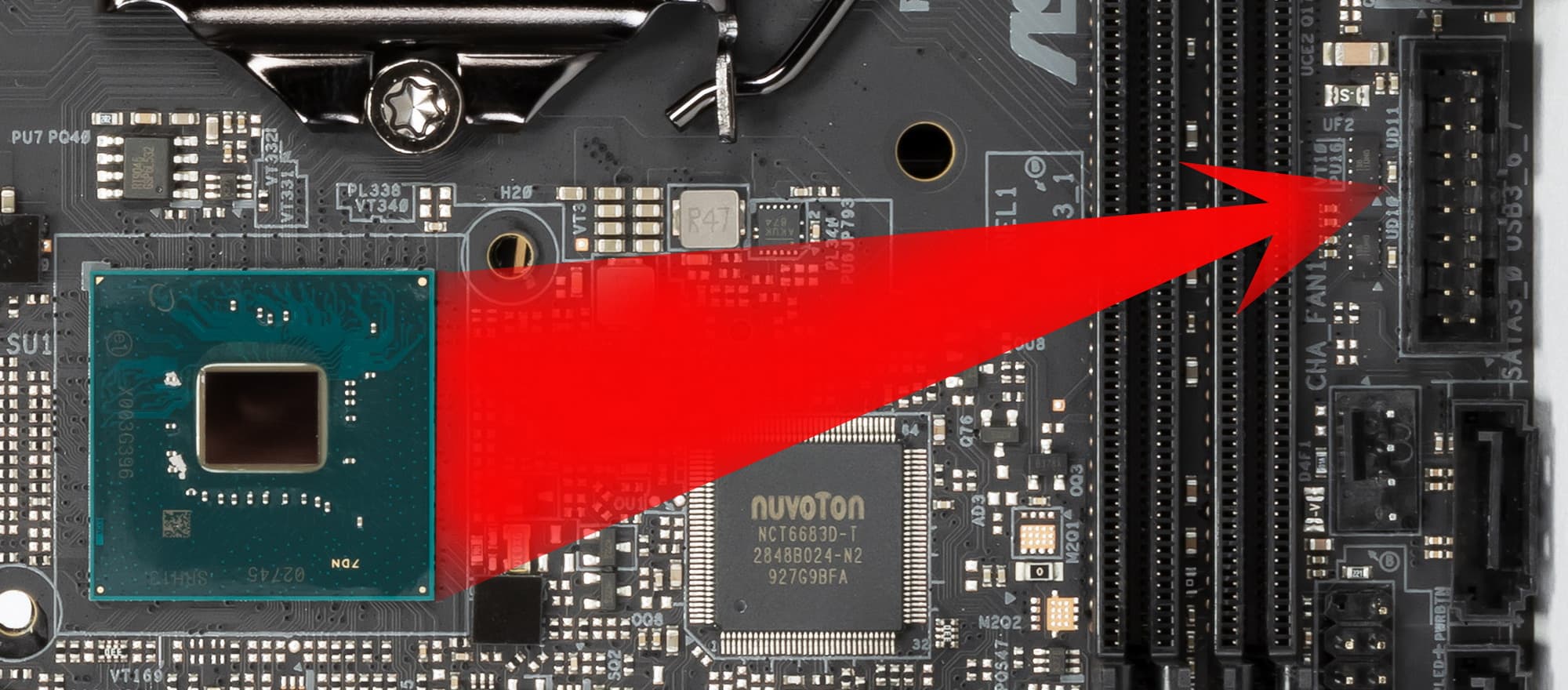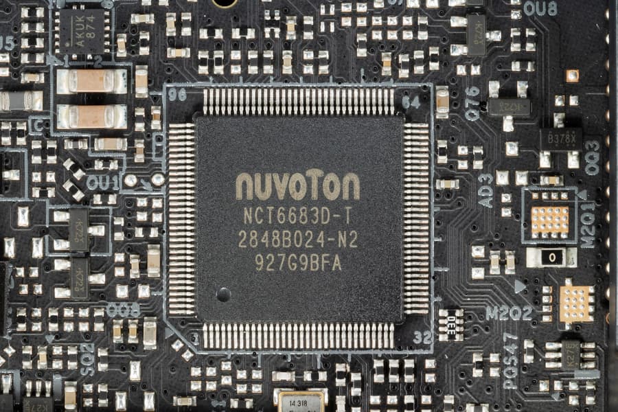 Контролем за работой всех гнезд СО занимается процессор от Nuvoton (осуществляющий получение информации с датчиков (мониторинг, а также Multi I/O).