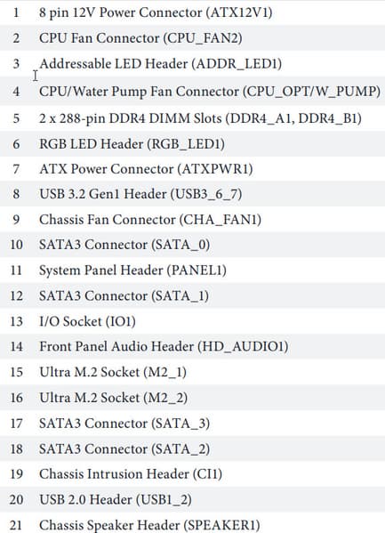 | USB-порты | 2 × USB 2.0: 1 внутренний разъем на 2 порта (Z490) 2 × USB 3.2 Gen1: 2 порта Type-A (синие) на задней панели (Z490) 2 × USB 3.2 Gen1: 1 внутренний разъем на 2 порта (Z490) 3 × USB 3.2 Gen2: 3 порта Type-A (голубые) (Z490) 1 × USB 3.2 Gen2: 1 порт Type-C на задней панели (Thunderbolt 3) |