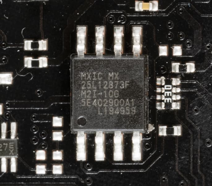 Для размещения прошивки UEFI/BIOS использована микросхема MX25L12873F от Macronix.