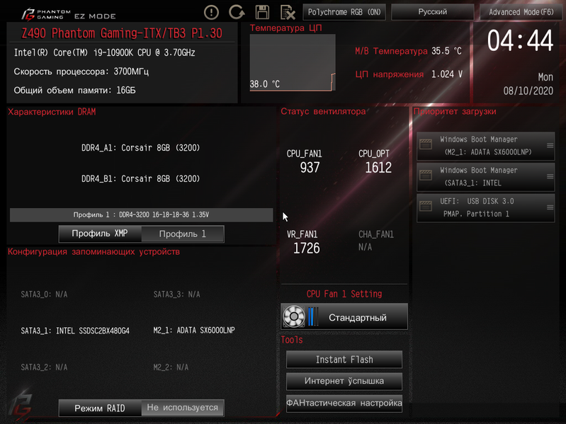 Итак, ASRock Z490 Phantom Gaming-ITX/TB3. Я уже выше говорил, что плата для геймеров. Также понятно, что это не самая навороченная модель (раз не PG X или Taichi Ultimate), и потому ожидать кучу «фенечек» типа «померяй мне вольтаж, и во всем районе погаснет свет» нет. А чем тогда горда материнка? Вот и разберемся.