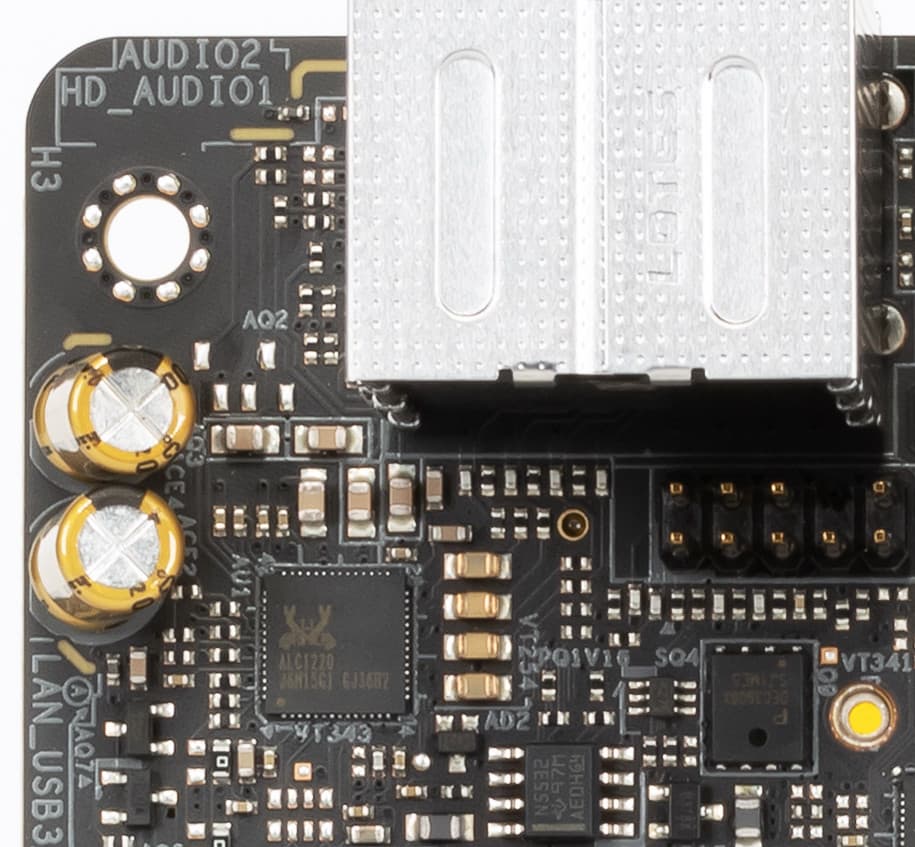 Данная аудиоподсистема типична как для продуктов ASRock, так и в целом. Звуком заведует аудиокодек Realtek ALC1220. Он обеспечивает вывод звука по схемам до 7.1.