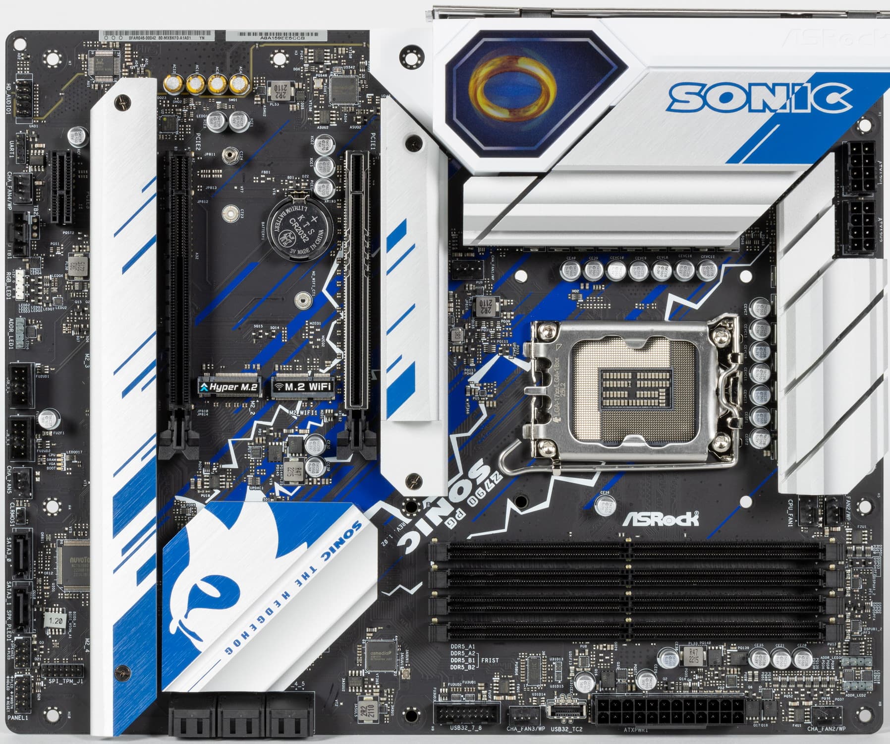 Сегодня в нашем тестлабе побывала материнская плата тайваньской компании ASRock, которая не относится к флагманским решениям, но при этом очень оригинально раскрашена (на тему популярного мультсериала про Ежика Соника), может понравиться любителям моддинговых ПК, да и одна из самых дешевых на Z790. Плата относится к серии Phantom Gaming, что уже означает позиционирование ее для игровых ПК.