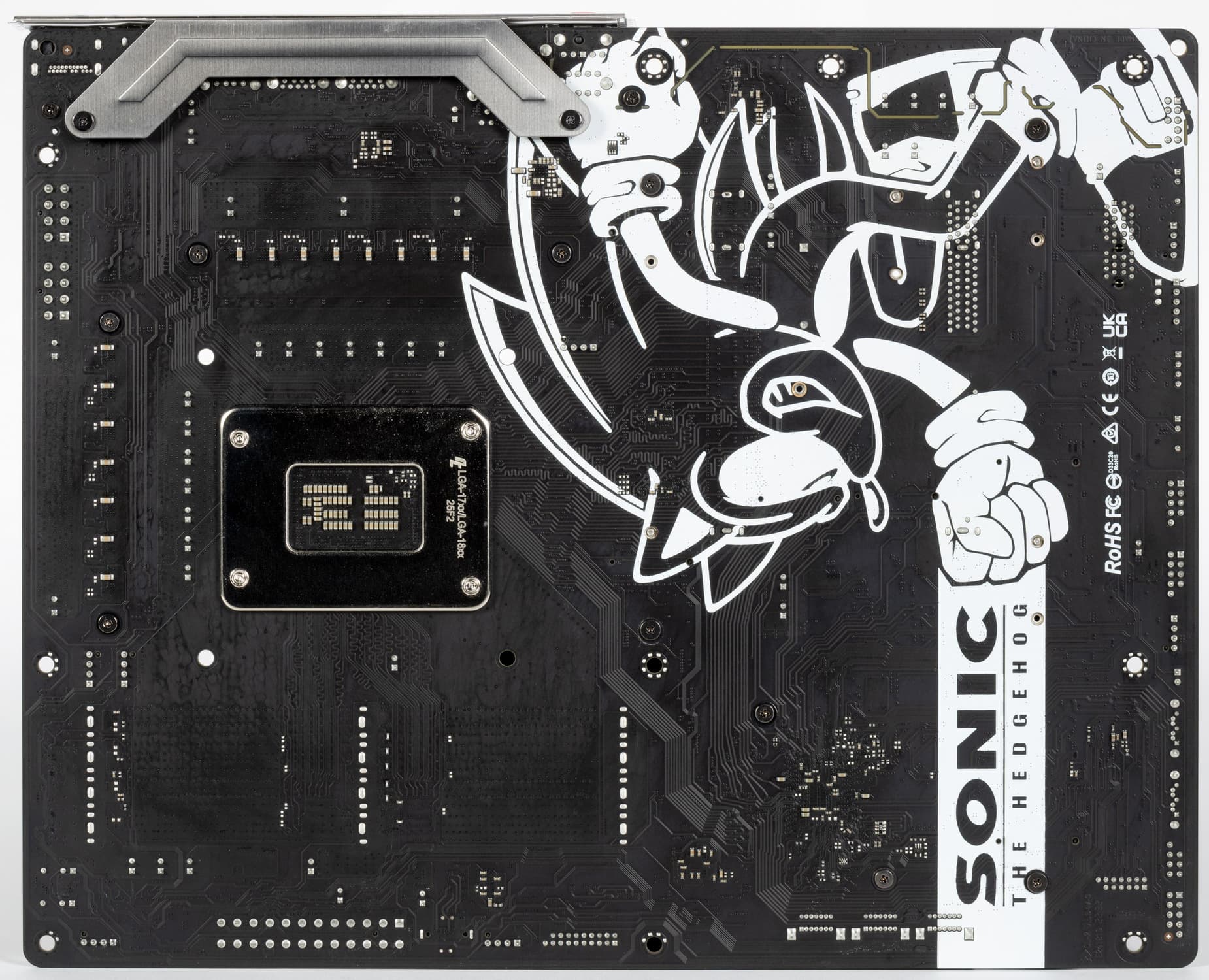 Форм-фактор ATX имеет размеры до 305×244 мм, а E-ATX — до 305×330 мм. Материнская плата ASRock Z790 Phantom Gaming Sonic имеет размеры 305×244 мм, поэтому выполнена в форм-факторе ATX, и на ней имеются 10 монтажных отверстий для установки в корпус.