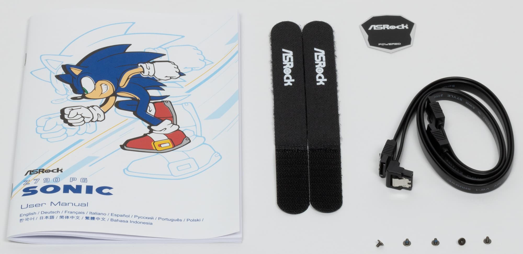 Вот и ASRock Z790 Phantom Gaming Sonic поставляется в такой упаковке. Комплект размещен под платой в отдельном отсеке.