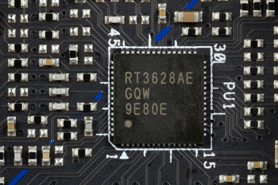 Управляет схемой ШИМ-контроллер RT3628 от Richtek, который рассчитан максимум на 8 фаз.