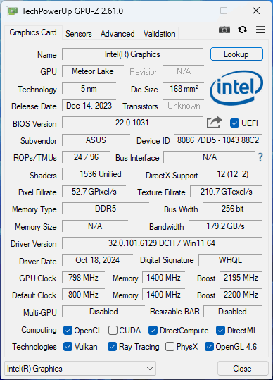 Особенно это относится ко встроенному GPU, который даже определяется с одним и с двумя модулями памяти по-разному. И работает, естественно, тоже. Так что если хотите действительно Intel Arc Graphics, как написано в спецификации, придется добавить второй модуль памяти. Теперь это не рекомендация, а обязательное требование.