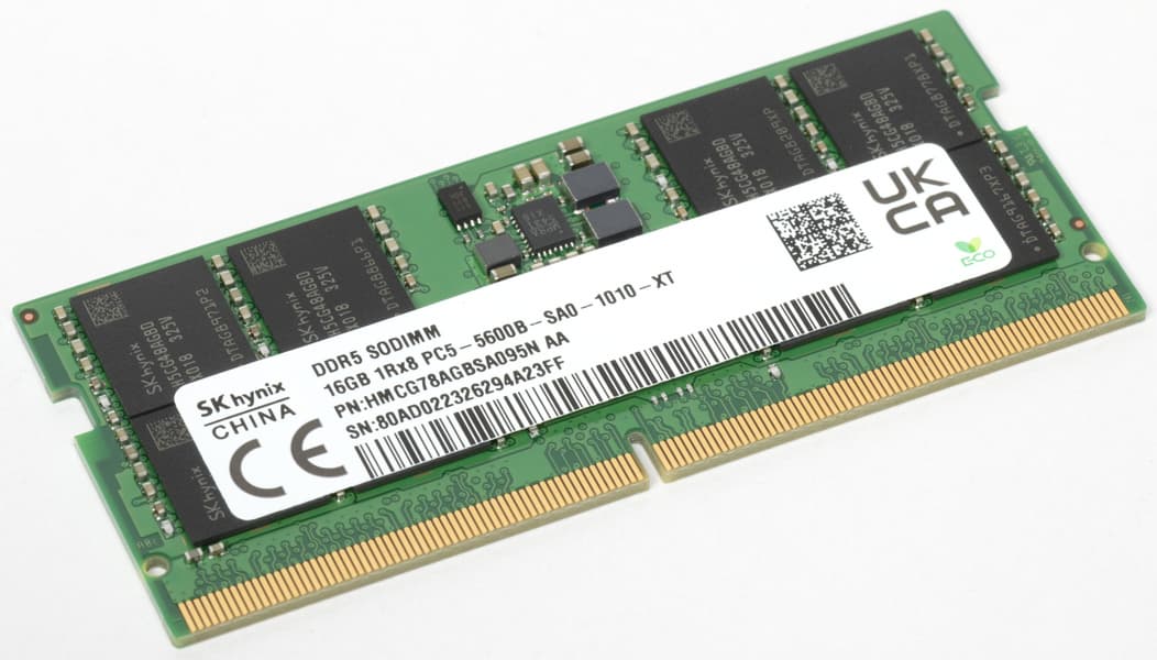 | Оперативная память | 2×DDR5 SO-DIMM 1×DDR5-5600 SK Hynix HMCG78AGBSA095N 16 ГБ |
