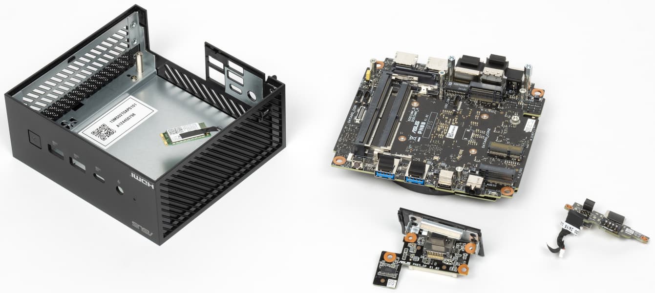 В общем и целом, ладно скроен, крепко слеплен. Принципиальных отличий от большинства мини-ПК нет, но, повторимся, это общее положение дел на рынке — форм-фактор NUC оказался очень удачным. Важно, что Asus не забросил собственную линейку и продолжает именно в ней радовать небольшими, но полезными мелочами — конфигурируемым набором портов, например.