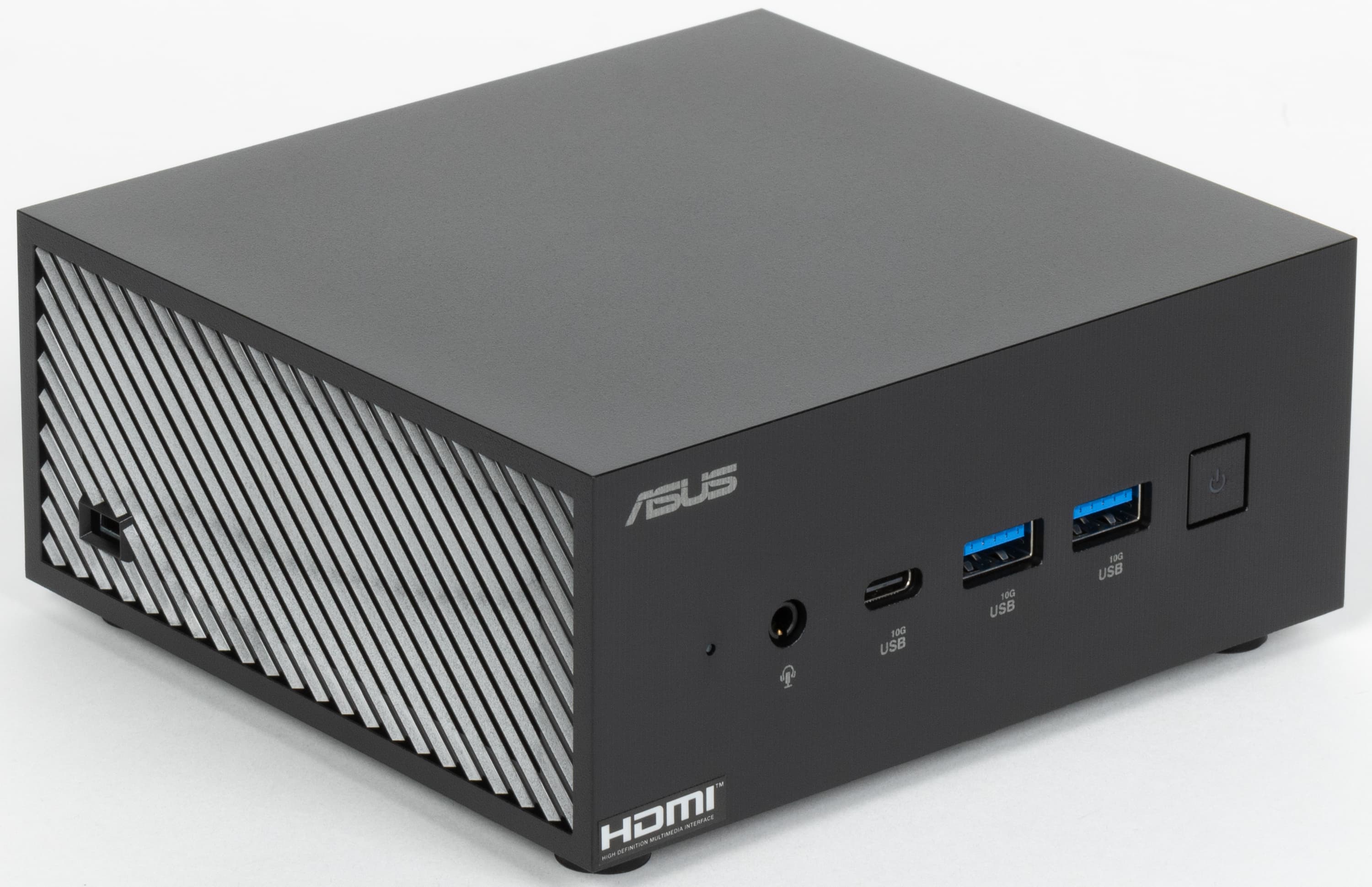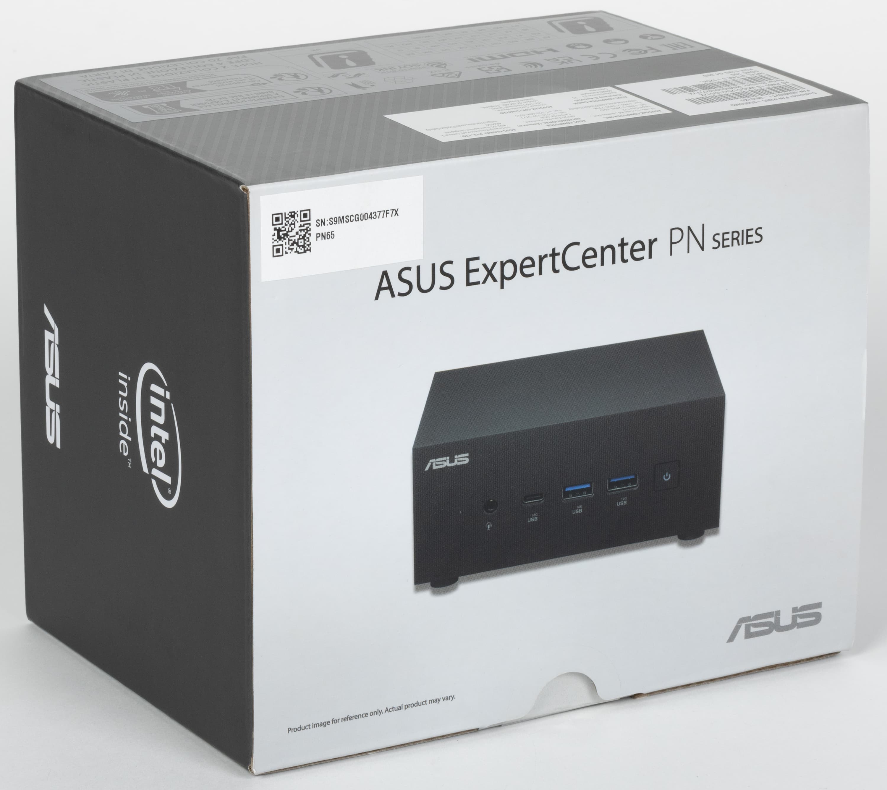 Внешне все ExpertCenter, равно как и очень многие мини-ПК других производителей, выглядят аналогично NUC. Хотя сложно было бы ожидать обратного — для того в свое время унификация и требовалась, чтобы мини-ПК разных компаний стали похожими друг на друга. Фактически ExpertCenter PN65 от «квадратных» NUC отличается лишь немного бо́льшими размерами, причем заметить это невооруженным глазом почти невозможно: стандартный «толстый» (то есть с возможностью установки двухдюймового накопителя) Asus NUC 15 Pro имеет размеры 117×112×54 мм, а здесь 120×130×58 мм, то есть практически одно и то же.
