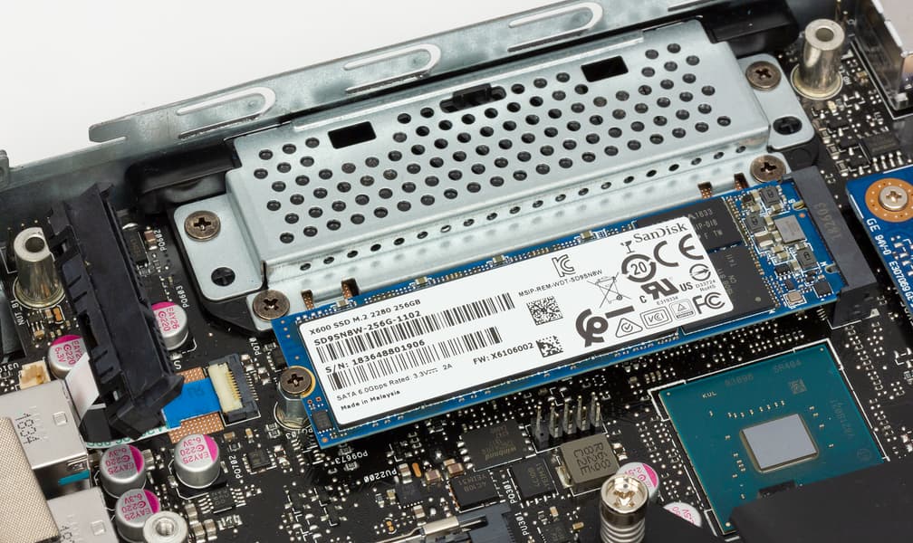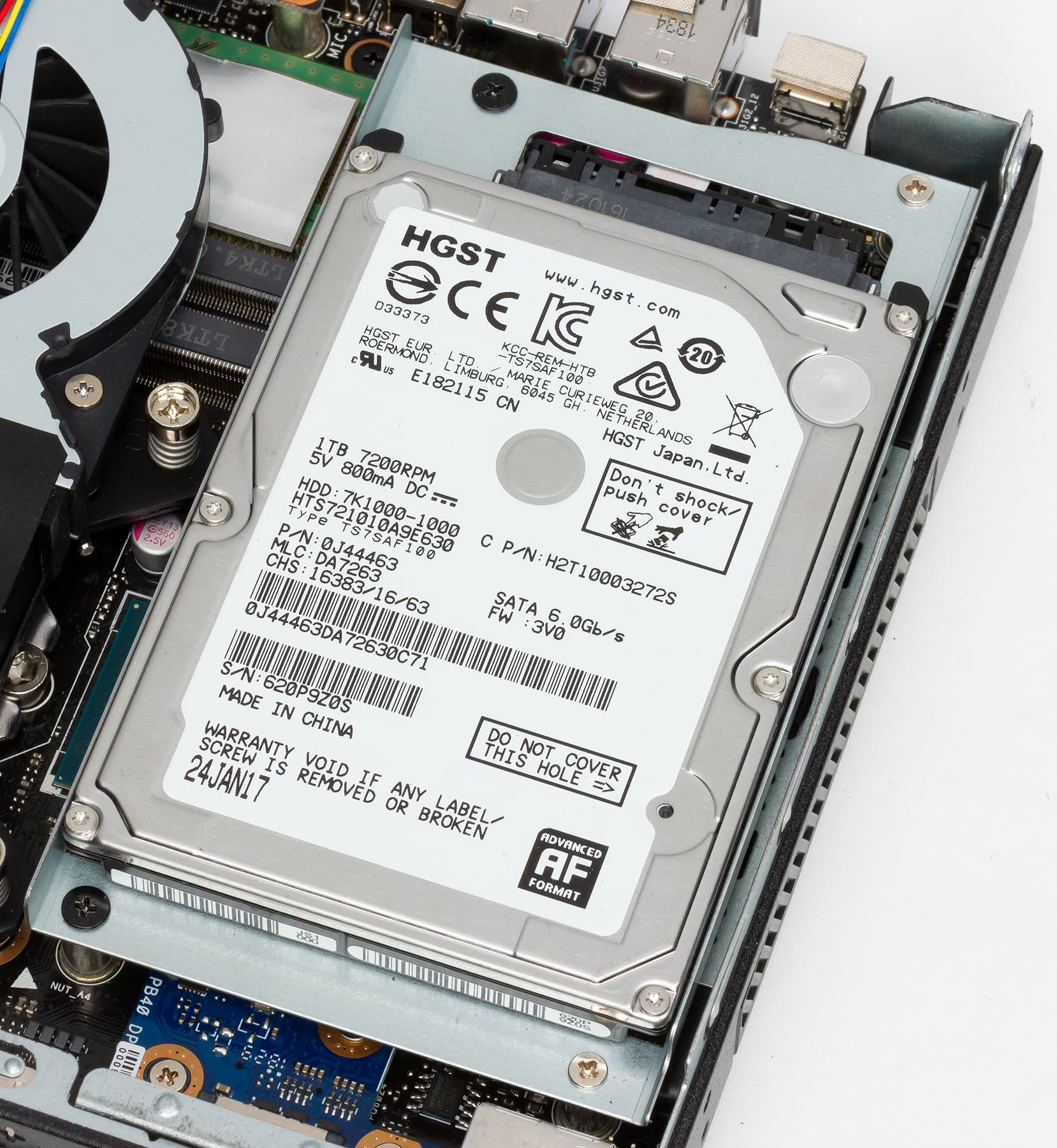 Подсистема хранения данных нашего мини-ПК Asus PB60V представляет собой комбинацию SSD SanDisk SD9SN8W256G1102 (256 ГБ, SATA 6 Гбит/с), который устанавливается а разъем M.2, и 2,5-дюймового HDD HGST HTS721010A9E630 (1 ТБ, SATA 6 Гбит/с).