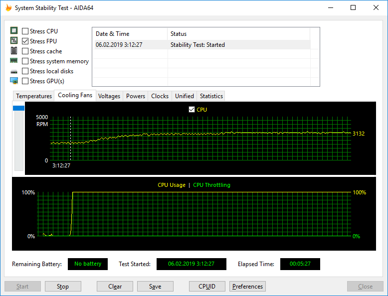 Скорость вращения вентилятора в таком режиме возрастает до 3170 об/мин.