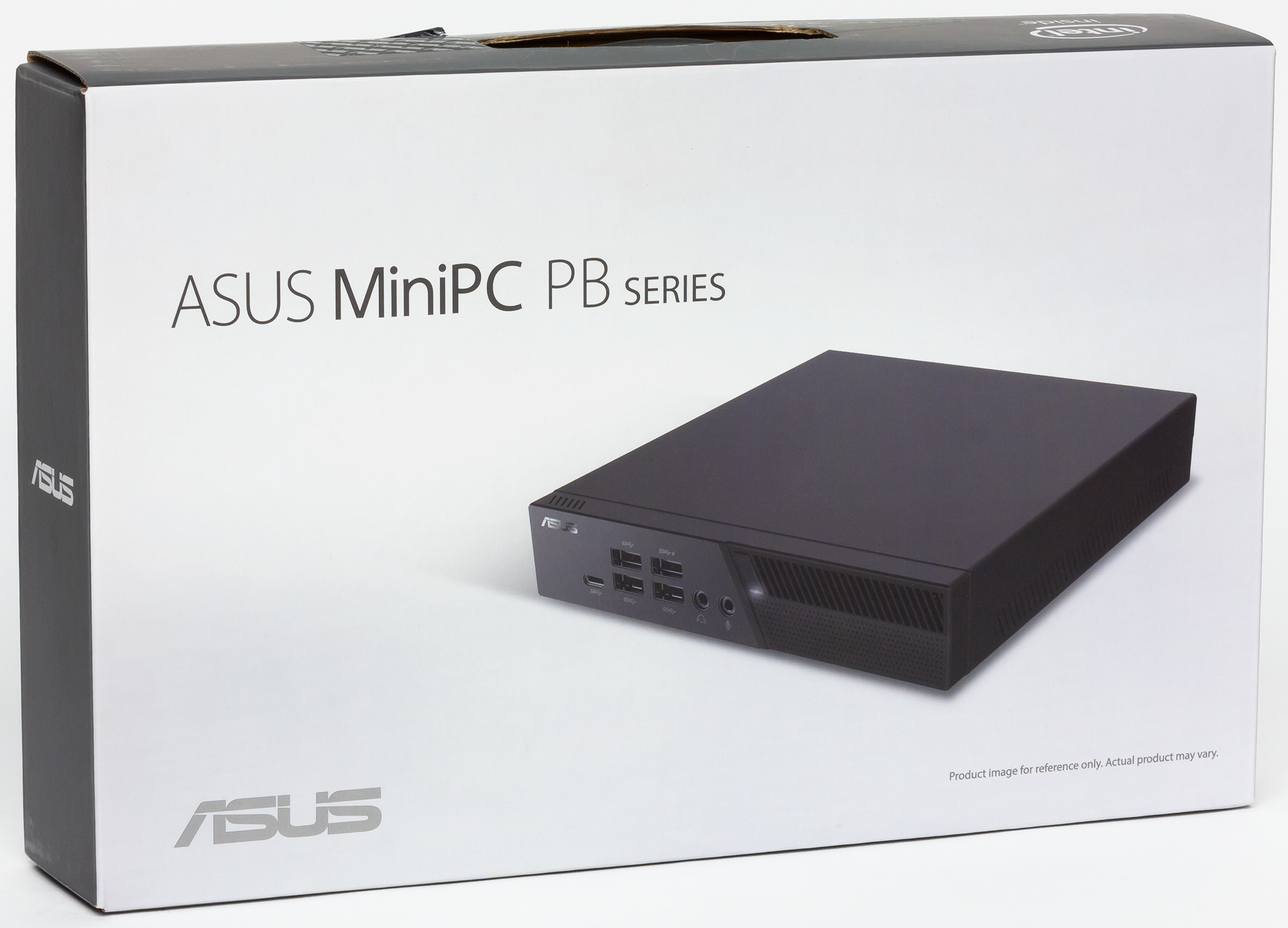 Мини-ПК Asus PB60V поставляется в небольшой коробке с ручкой (в аналогичных по размерам коробках поставляются компактные ноутбуки).