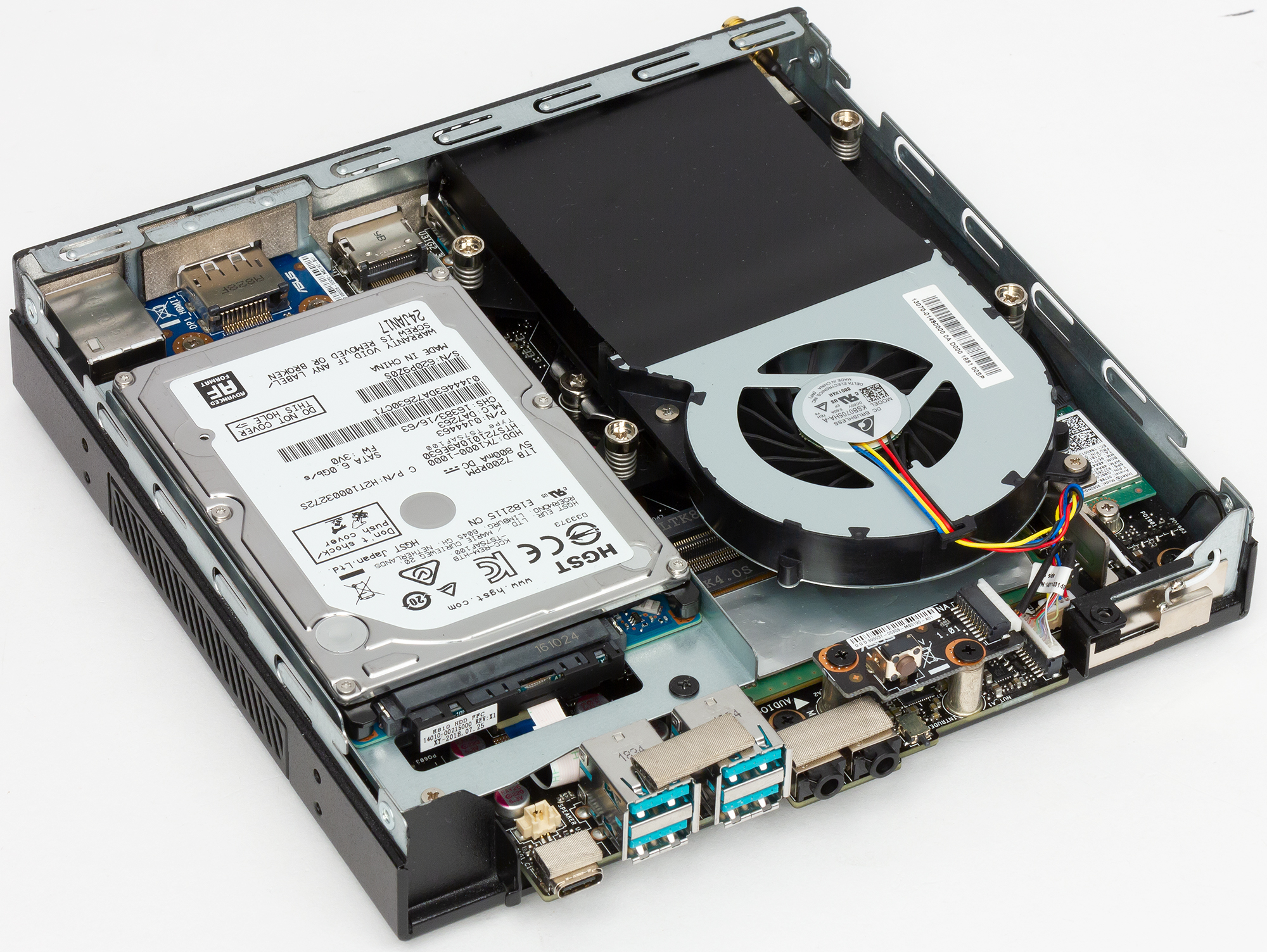 Кроме того, особенностью всей серии мини-ПК PB60 является наличие конфигурируемого порта: один порт на задней панели можно выбрать, это может быть порт COM, VGA или DisplayPort. В нашем варианте это был DisplayPort.