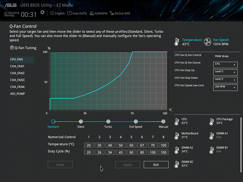 Плата поддерживает небуферизованную память DDR5, а максимальный объем памяти составляет 256 ГБ. Поддерживаются профили XMP и Expo.