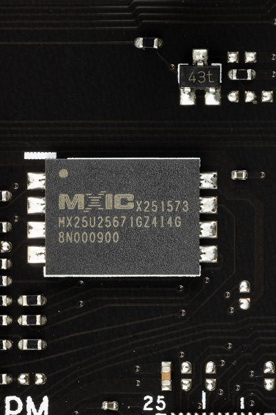 В арсенале этой модели также есть еще 2 порта SATA и 7 разъемов для вентиляторов. Система питания процессора умеренно мощная (предполагается, что с топовыми процессорами такую плату использовать не станут). Плата имеет систему охлаждения для чипсета, блока преобразователей VRM, однако только один слот M.2 имеет штатное охлаждение. Сетевые возможности включают проводной контроллер 2,5 Гбит/с и беспроводной Wi-Fi 6E + Bluetooth 5.3. В числе плюсов платы можно упомянуть широкие возможности для подключения дополнительных RGB-устройств.