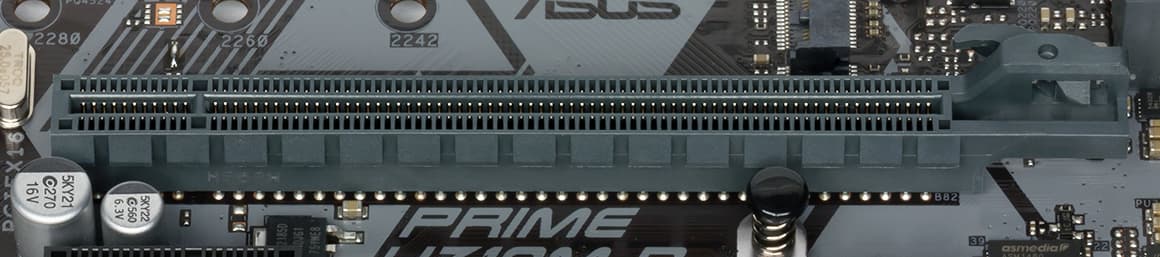 У всех CPU под LGA1151v2 всего 16 линий PCI-E. И все идут на единственный слот PCI-Ex16. А вот два слота PCI-Ex1 получают данные от чипсета H310, и опять же из-за лимита HSIO портов оба «коротких» слота не могут работать одновременно: или один, или другой.