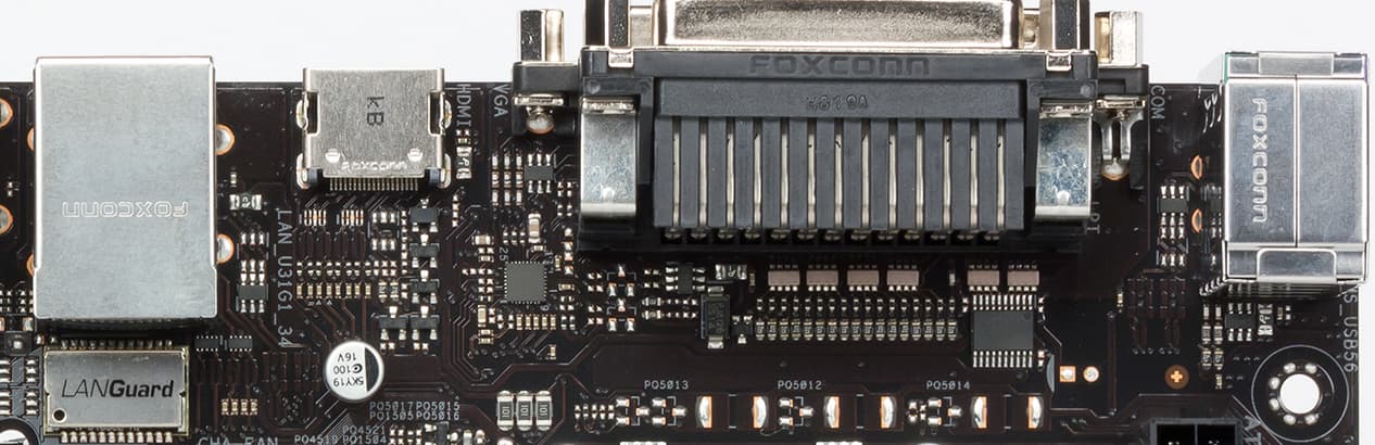 Поскольку очень многие процессоры класса Intel Core i3/5/7/9 8xxx/9xxx имеют интегрированное графическое ядро, то львиная доля материнских плат на чипсетах для таких процессоров имеет гнезда вывода изображения. Не исключением стала и эта плата, у нее есть два гнезда вывода: HDMI 1.4 и d-Sub (VGA). Поддержки второго в чипсете нет, поэтому в помощь выводу на старые мониторы через d-Sub предназначен чип Realtek RID2166.