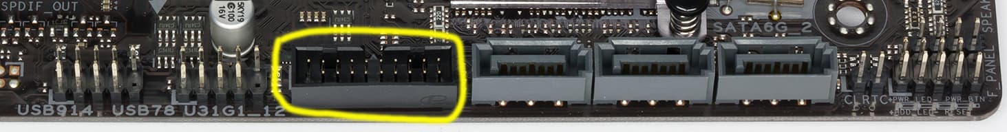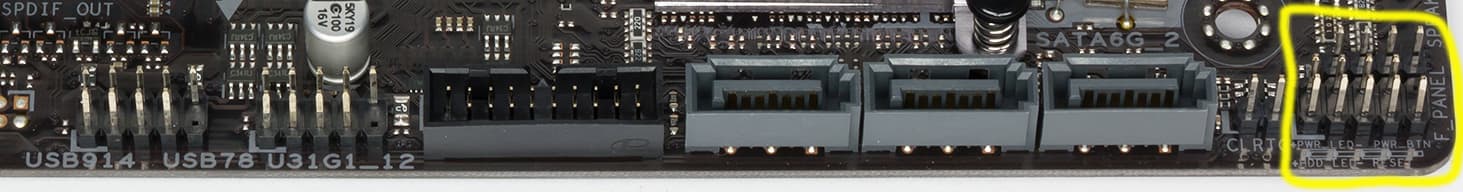 Имеется традиционный набор штырьков FPanel для подключения проводов к передней (а сейчас уже часто и верхней или боковой или все это сразу) панели корпуса.