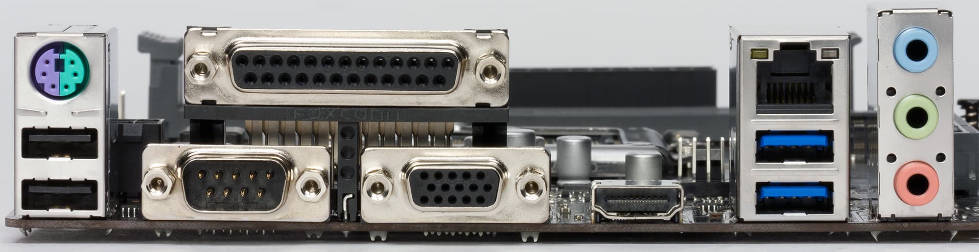 Здесь стоит отметить явную направленность данной материнской платы на оборудование сильно прошлых лет, требующее LPT/COM портов. Потому что данная материнка обладает всеми этими портами (занимается ими все тот же контроллер Nuvoton). Плюс PS/2 для старых клавиатур и мышей.