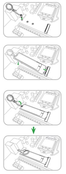 Это, так сказать, заменитель традиционных винтиков, которыми прикручиваются накопители форм-фактора M.2. Процесс установки показан тут: