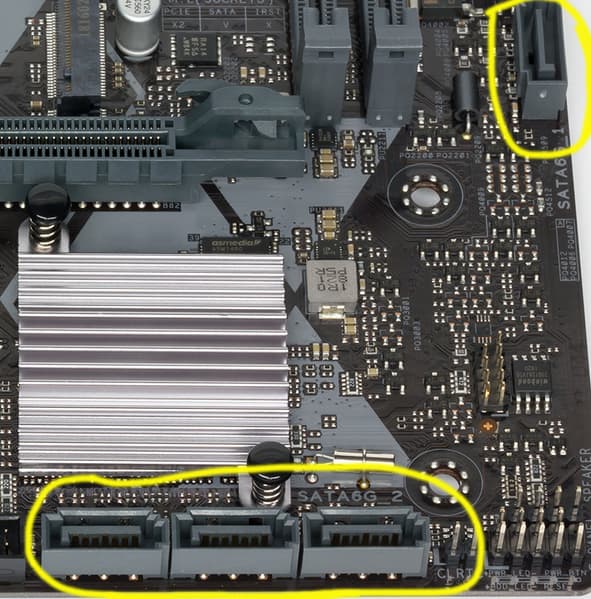 - Переключатель (это указано в характеристиках): или порт SATA_2 (1 линия) или слот M.2 (1 линия): максимум 1 линия;