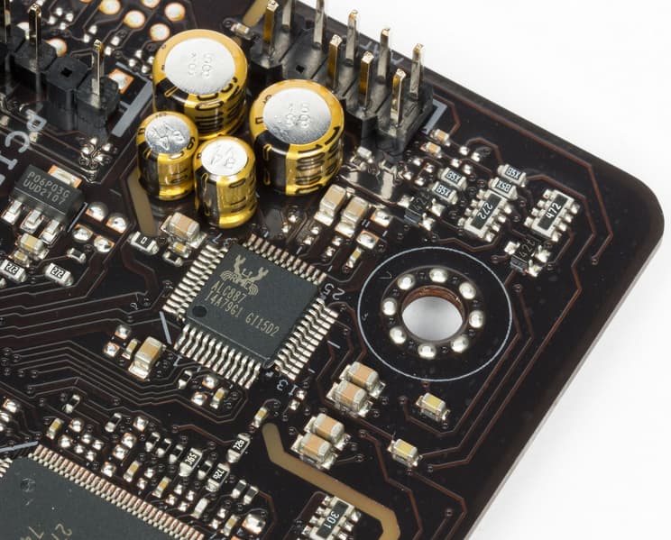 Понятно, что материнская плата за 5000-8000 рублей никогда не будет иметь особую аудиосистему с ЦАП и т. п. Тут даже кодек не обычный Realtek ALC1220, а несколько более простой ALC887. Формально он обеспечивает вывод звука по схемам до 7.1, однако в реале там 5.1 от силы.
