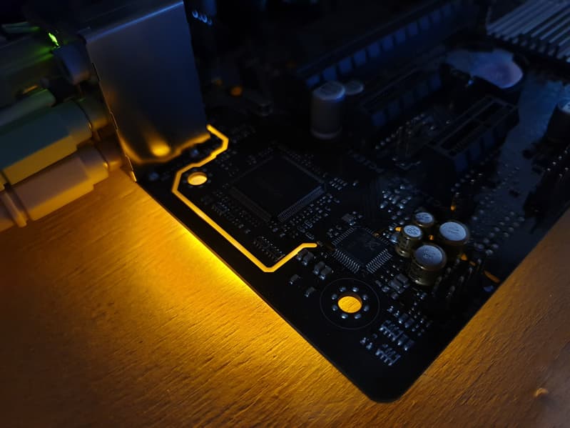 Тем не менее, платы серии Prime обычно не лишены подсветки полностью, и в данном случае подсвечен отделяющий аудиотракт светодиодный канал.