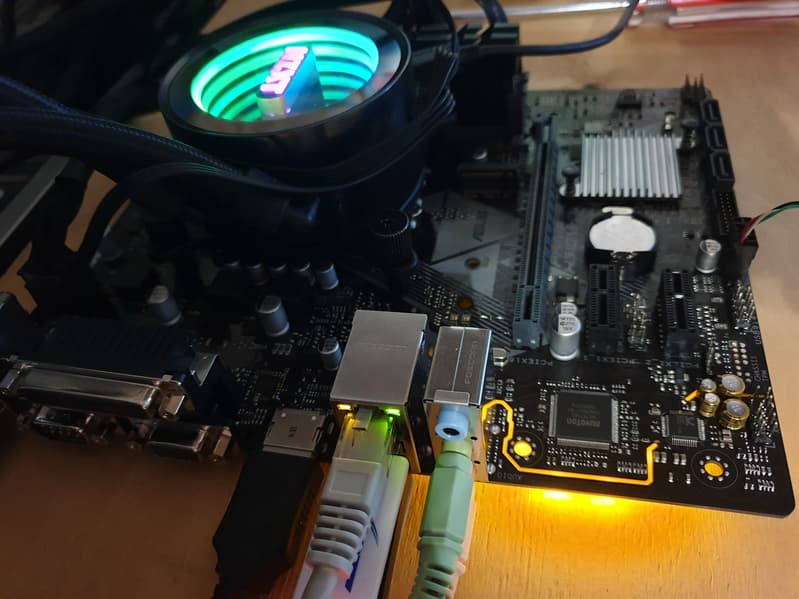 - 6 портов USB 2.0/1.1: все реализованы через H310: 2 представлены на задней панели двумя портами Type-A (черного цвета) и еще 4представлены двумя внутренними разъемами (каждый на 2 порта).