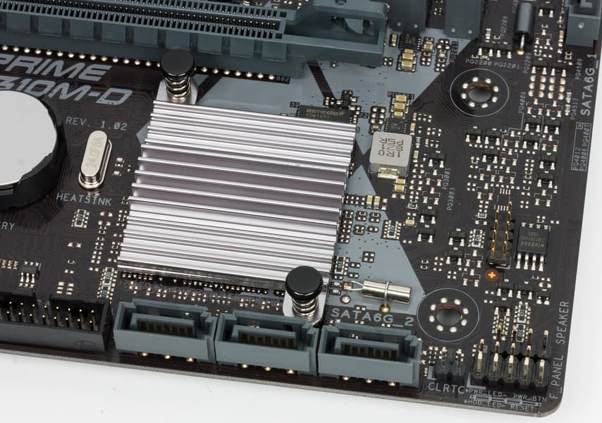 Напомню, что порт SATA 2 делит ресурсы со слотом M.2. Он поддерживает модули с любым интерфейсом (и любого размера до 2280 включительно). Радиатора не имеет.