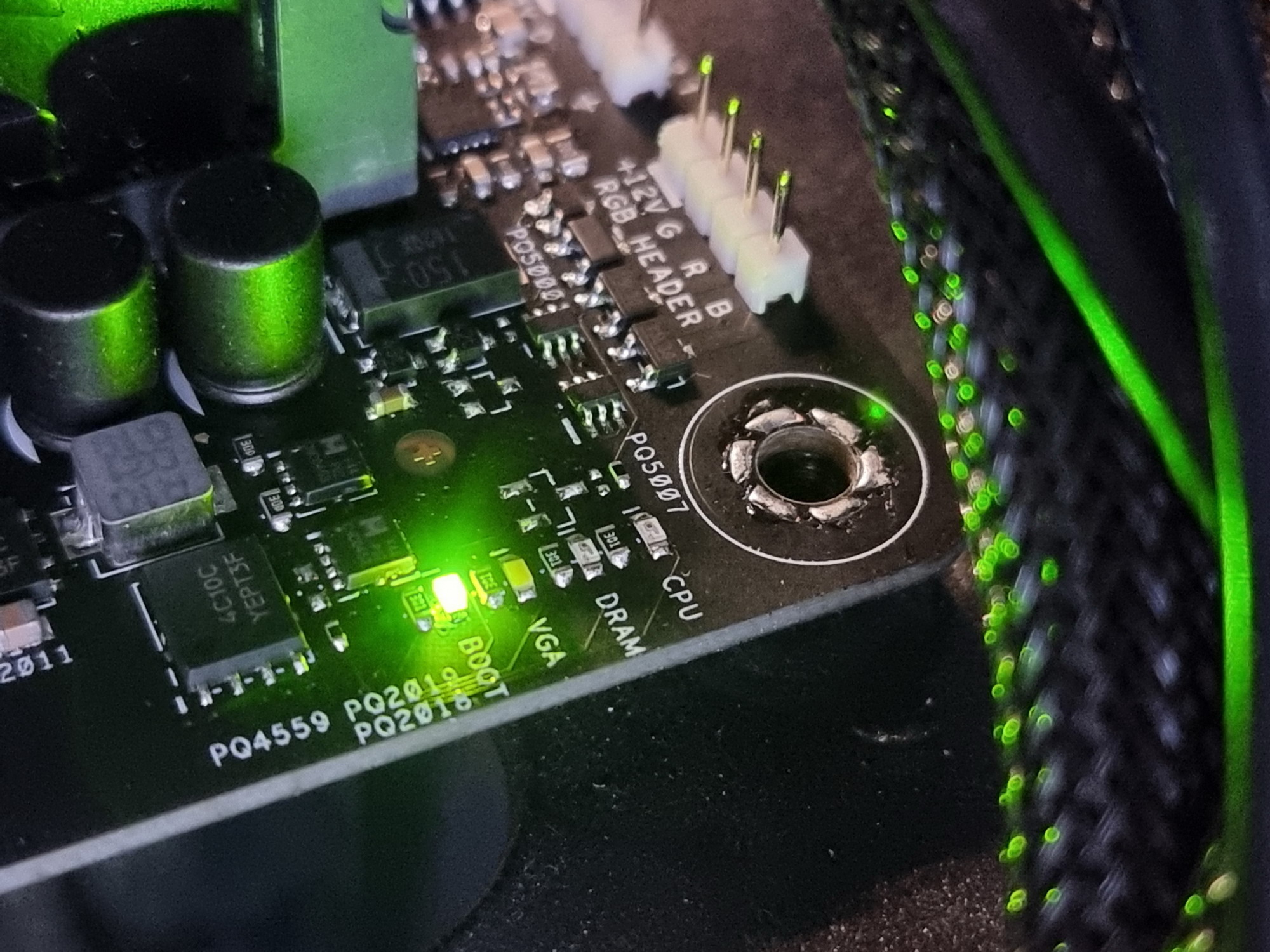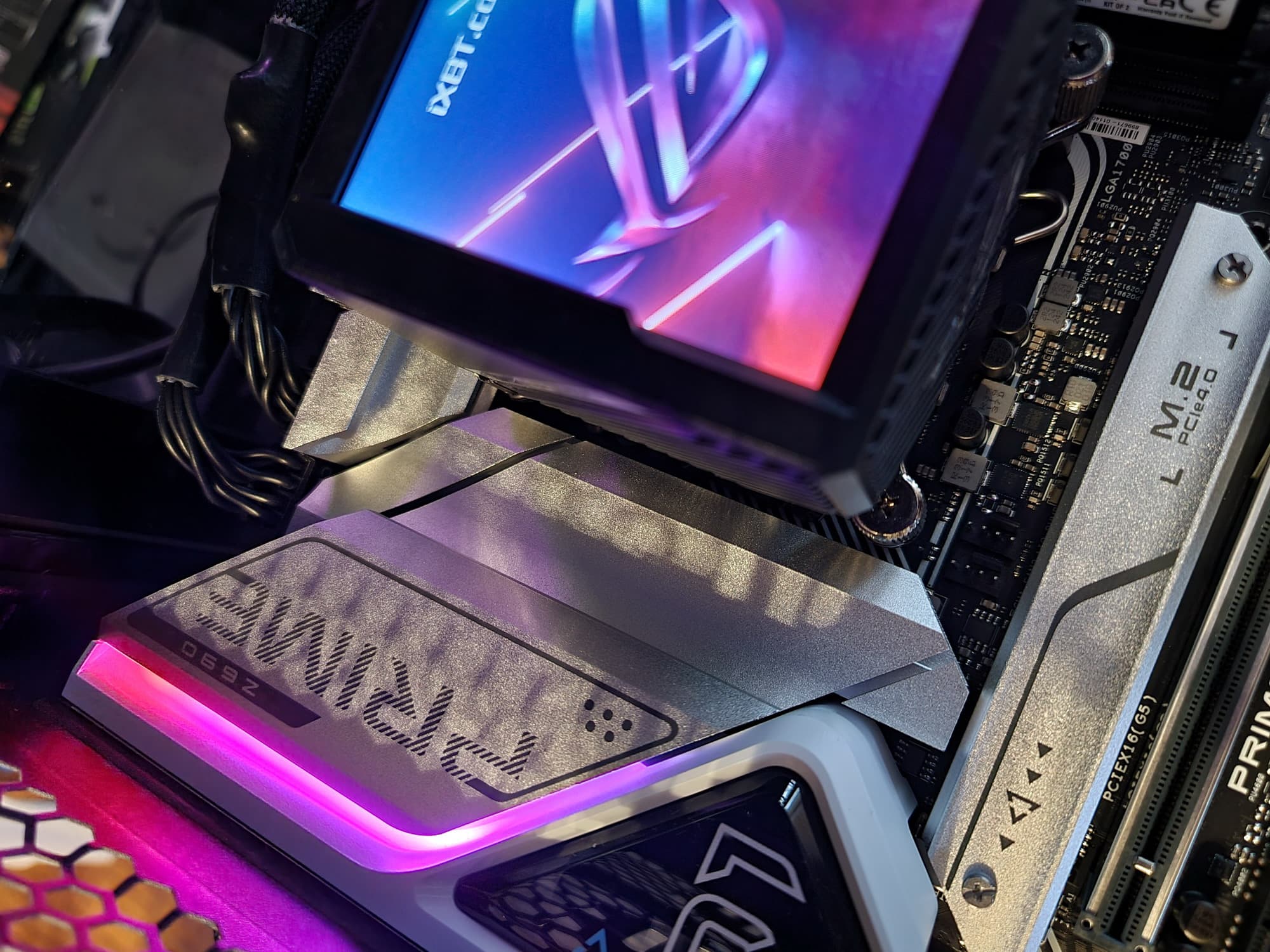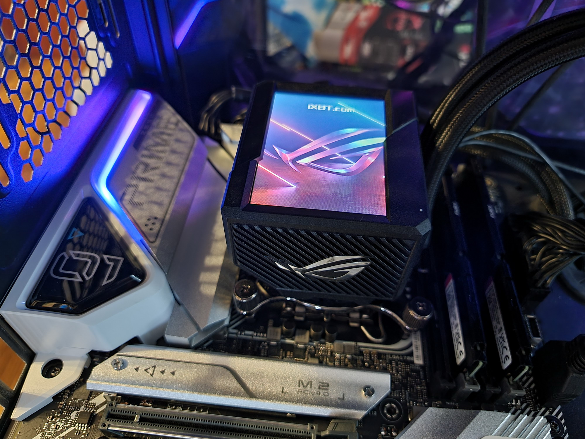 Радиатор VRM, идущий вдоль заднего блока портов, имеет пластиковый кожух, оснащенный подсветкой.