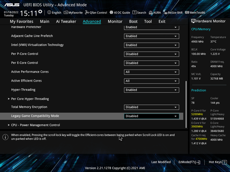 И это на материнке, которая не входит во флагманскую серию ROG, которая сама по себе относится к среднему классу (ну относительно, конечно, ибо все же базируется на топовом Z690). Можно сказать, что шикарно! А как насчет 5.1 ГГц? До сего момента такая частота по Р-ядрам поддавалась только флагманам с очень высокой стоимостью.