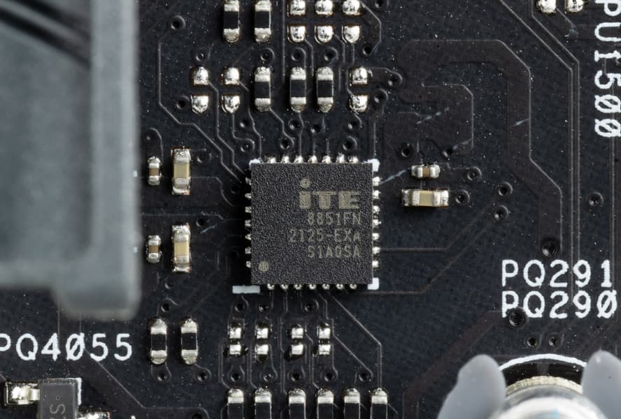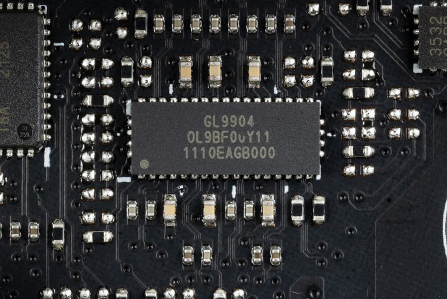 - 1 порт USB 3.2 Gen2x2: реализован с помощью двух хабов ITE IT8851 и Realtek RTS5463 (на них потрачены 2 линии USB 2.0) и представлен на задней панели портом Type-C;