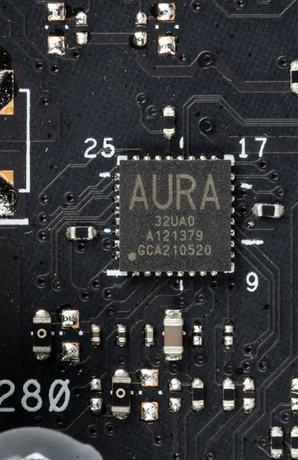 На оборотной стороне ничего по сути нет. Текстолит обработан: во всех точках пайки острые концы срезаны. Бэкплейта нет.