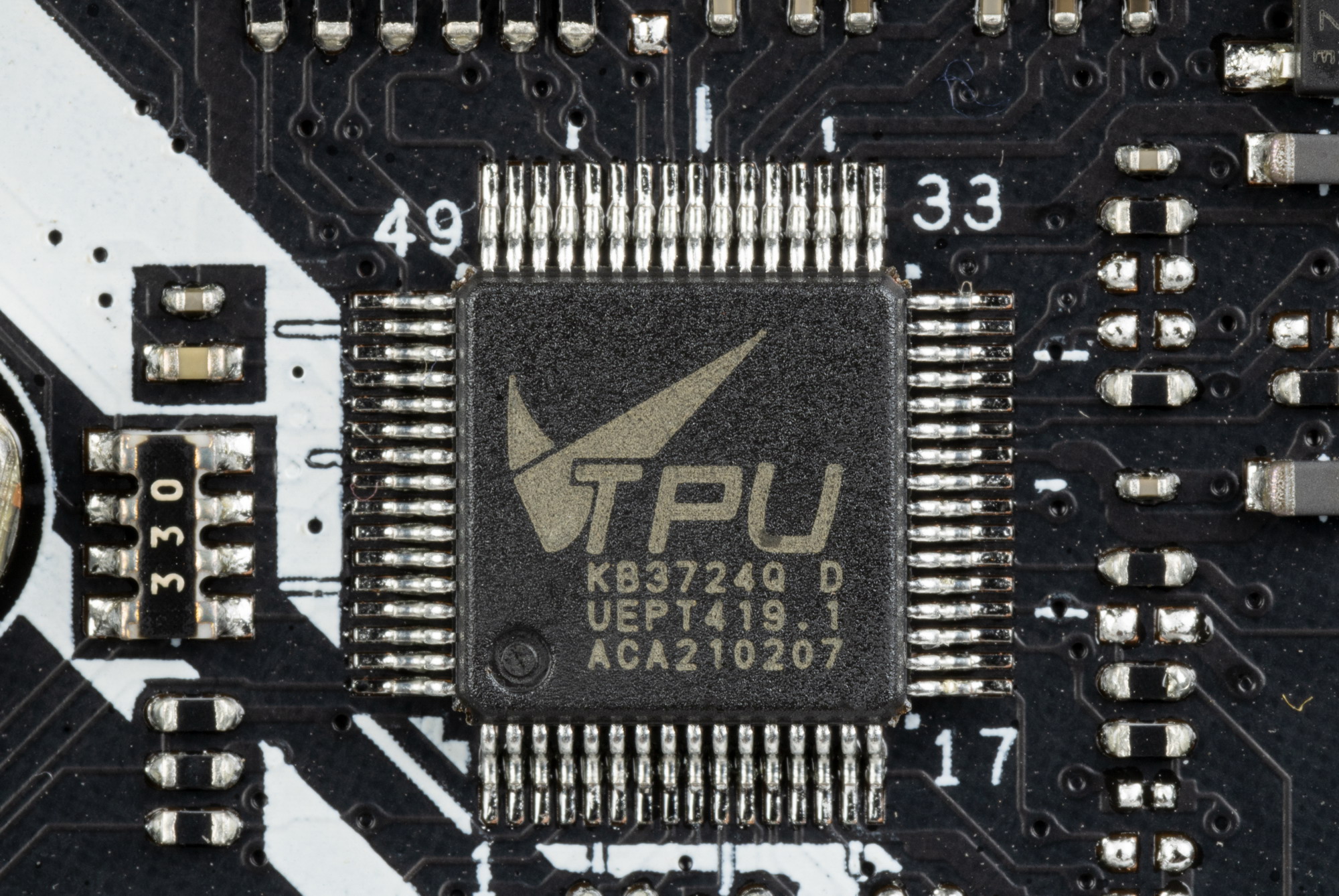 Хорошо известно, что инженеры Asus никогда не пользуются удвоителями фаз, даже если количество фаз огромно и превышает возможности ШИМ-контроллеров, поэтому практически на всех материнских платах среднего и топового уровней можно найти фирменный цифровой контроллер TPU, который как раз и занимается умными сборками фаз питания для ШИМ-контроллера. В частности тут имеем: