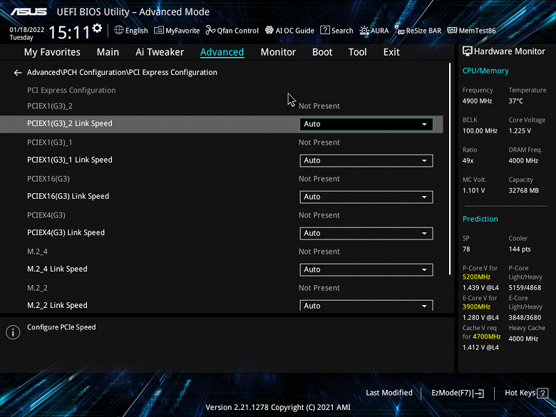 Кроме USB-портов, к которым мы подойдем позже, чипсет Z690 обладает 28 PCIe линиями. Считаем, сколько линий уходит на поддержку (связь) с тем или иным элементом (надо учитывать, что 28 линий не единой версии, а 12 линий PCIe 4.0 и 16 линий PCIe 3.0):