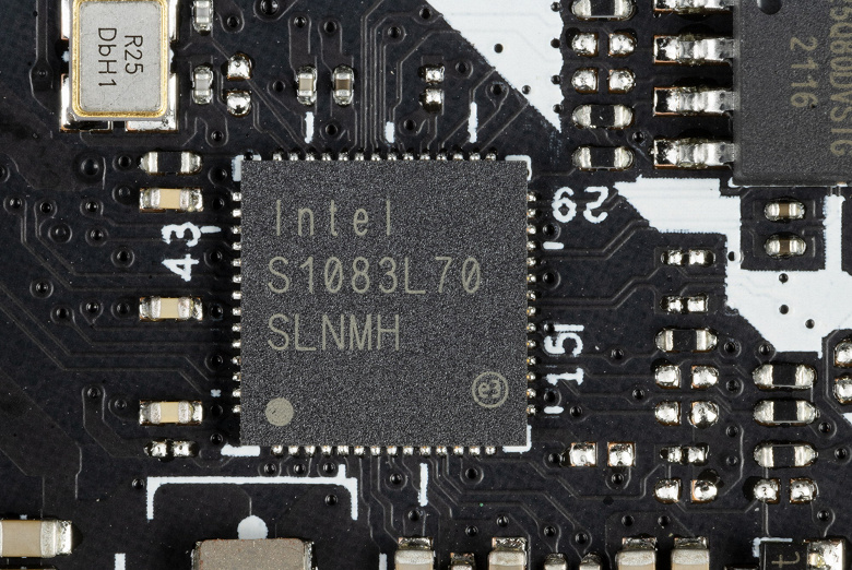 Материнская плата оснащена средствами связи посредственно. Имеется только один Ethernet-контроллер, но все же скоростной: Intel I225-V, способный работать по стандарту 2,5 Гбит/с.